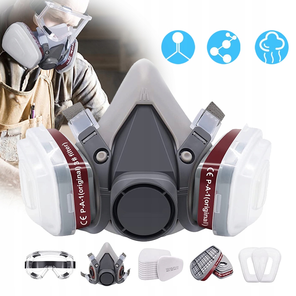 🟠【Широке застосування】 Напівмаска може блокувати багато небезпечних речовин, робочі місця з хімікатами, склом, металом, фарбою, формальдегідами та іншими дратівливими парами/ газ. Захист від частинок пилу під час механічних робіт, таких як зварювання, пиляння, шліфування, графіті тощо