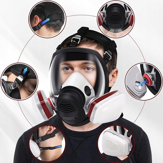 Повний захист конфіденційності: уся конструкція обличчя забезпечує всебічний захист, забезпечуючи ширше поле зору. Повна респіраторна маска з фільтром для запобігання потраплянню дрібних речовин, конструкція дихального клапана також зменшує накопичення тепла та вологи в багаторазовому респіраторі, а також зменшує опір диханню, підвищуючи легкість дихання
