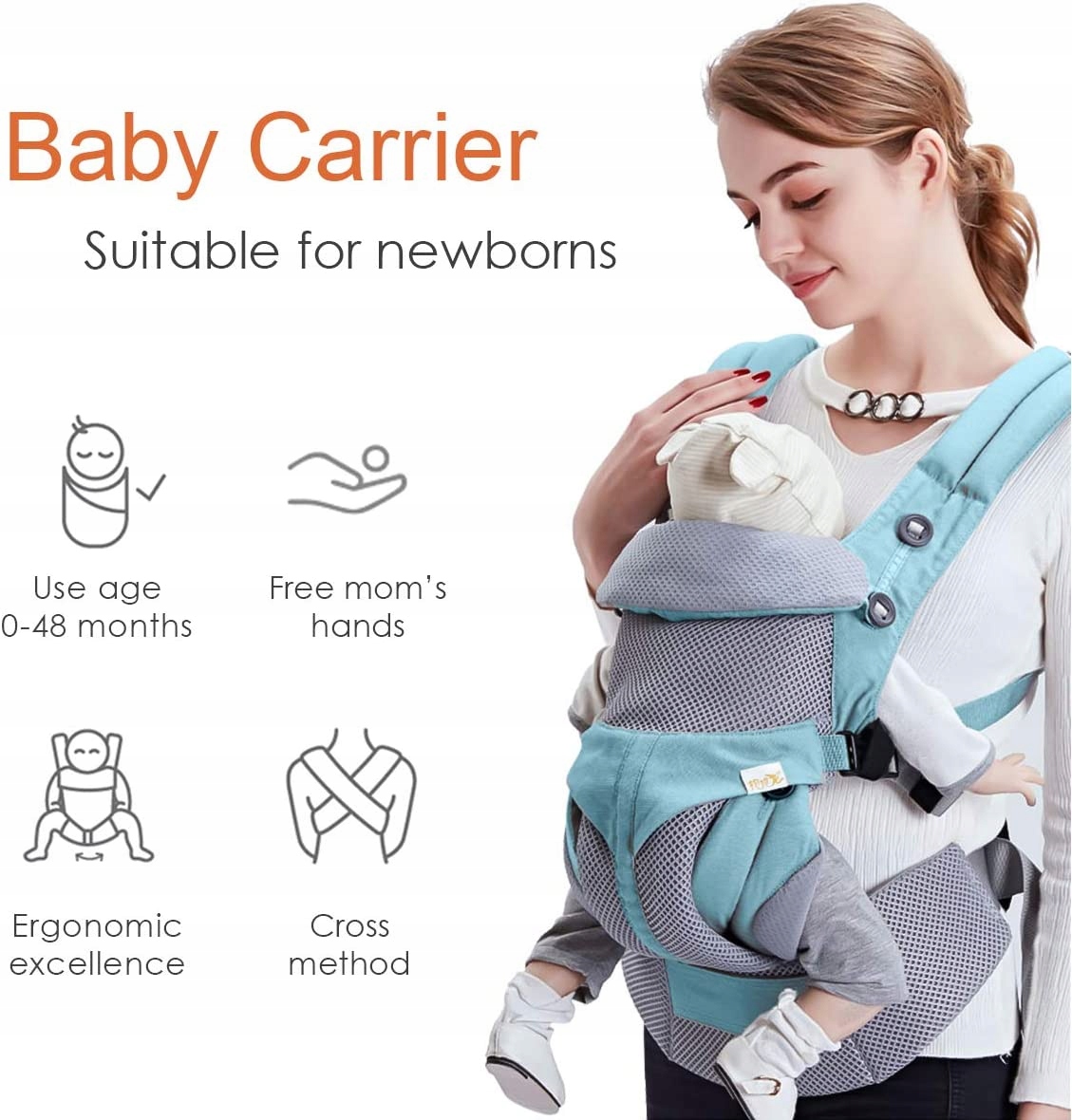 - Виріб зручний і легкий, стильний і красивий особливості, батьки можуть використовуватися для перенесення дитини під час походів, заходів на свіжому повітрі або під час різних заходів, чотири ергономічні позиції для носіння: спереду всередину, спереду всередину, спереду назовні, стегно та спина. Прати окремо, не відбілювати.