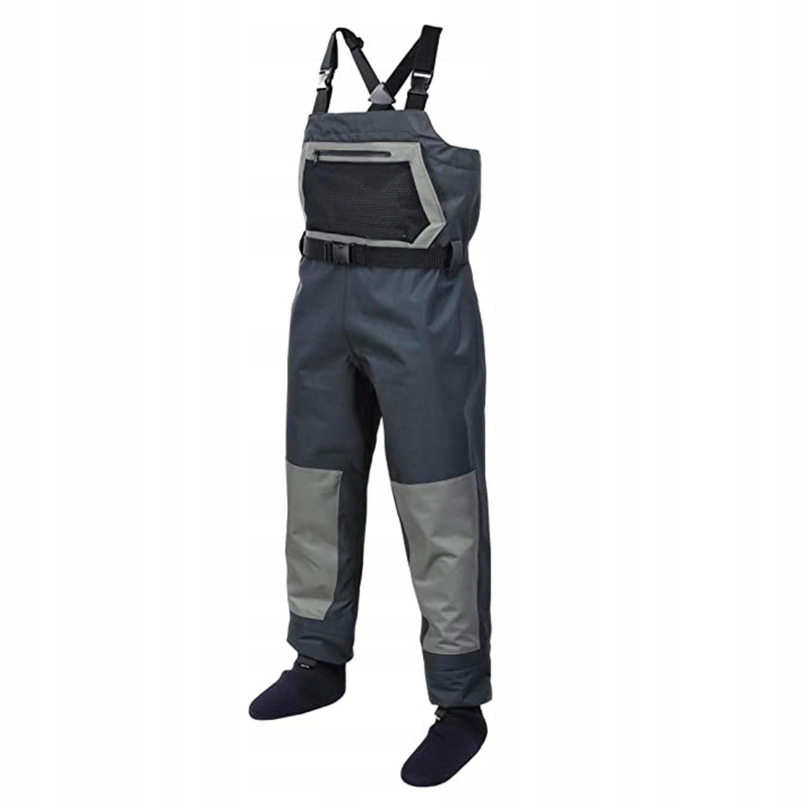 На грудях є водонепроникні кишені на блискавці з неопреновими шкарпетками, а на щиколотках є гачки та петлі для регулювання ваших ботинок.