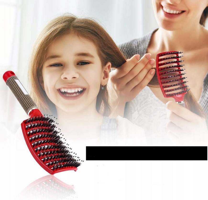Комбінована поверхня пензля широка і зігнута, щоб правильно адаптуватися до анатомічної форми голови. Кисть має щільно розташоване нейлонове розчісування голки, завершені кульками, завдяки яким вони м'які до шкіри голови та додатково масажують її.