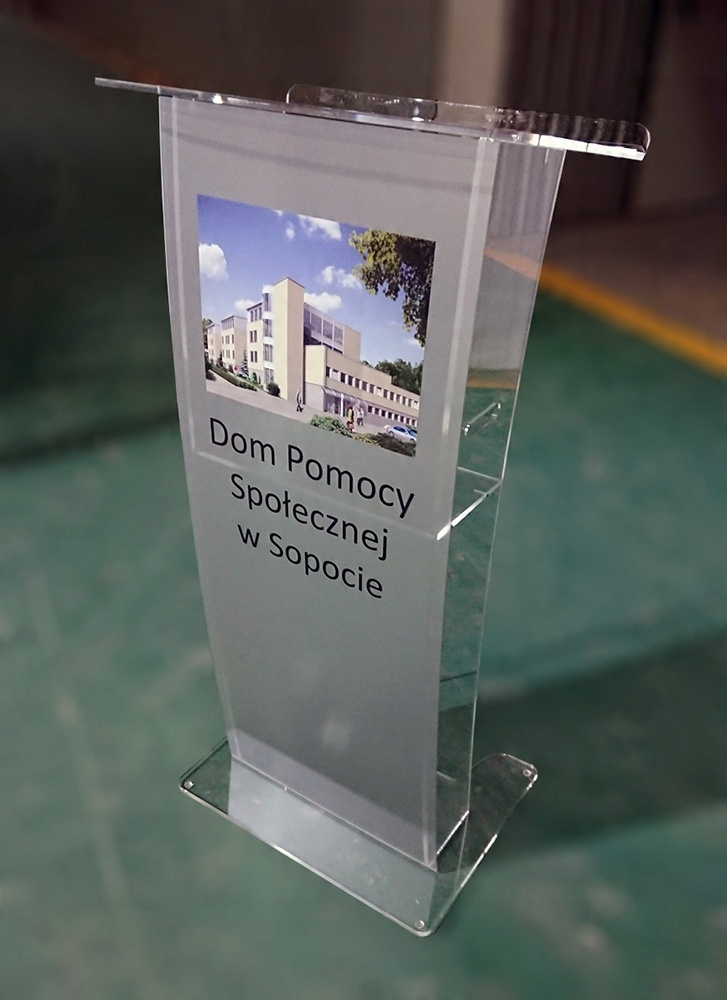 оргскла ідеально підходить для всіх типів публічних подій, банкетів, конференцій або інших випадкових подій, що піднімають свій престиж і гарантують стабільну та елегантну позицію під час виступу. Ми можемо легко поставити логотип компанії, міський герб або всілякі графіки. Додаткові переваги учнів нашої конференції - це легкість та мобільність. Завдяки компактній, твердій конструкції, вони не потребують складання, якщо це необхідно, їх можна транспортувати пасажирською машиною. Завдяки матовій поверхні, вона прекрасно працює при записі фільмів або фотографування - це не відображає світлові відбиття. Крім того, він частково охоплює динамік, що дозволяє більше зосередитись на його обличчі.