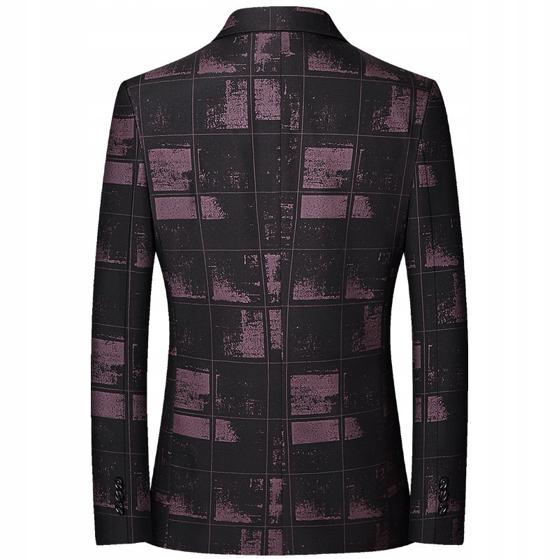 - Чоловічий приталений піджак у клітинку з лацканами, одинарний Застібка на грудях і 2 ґудзики