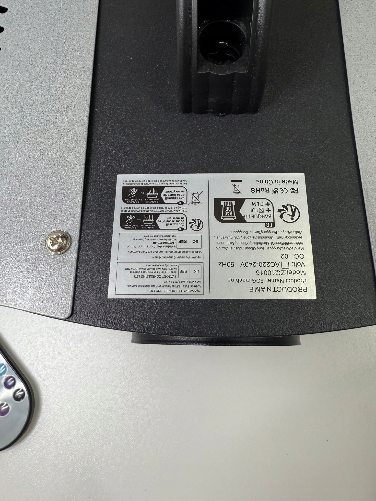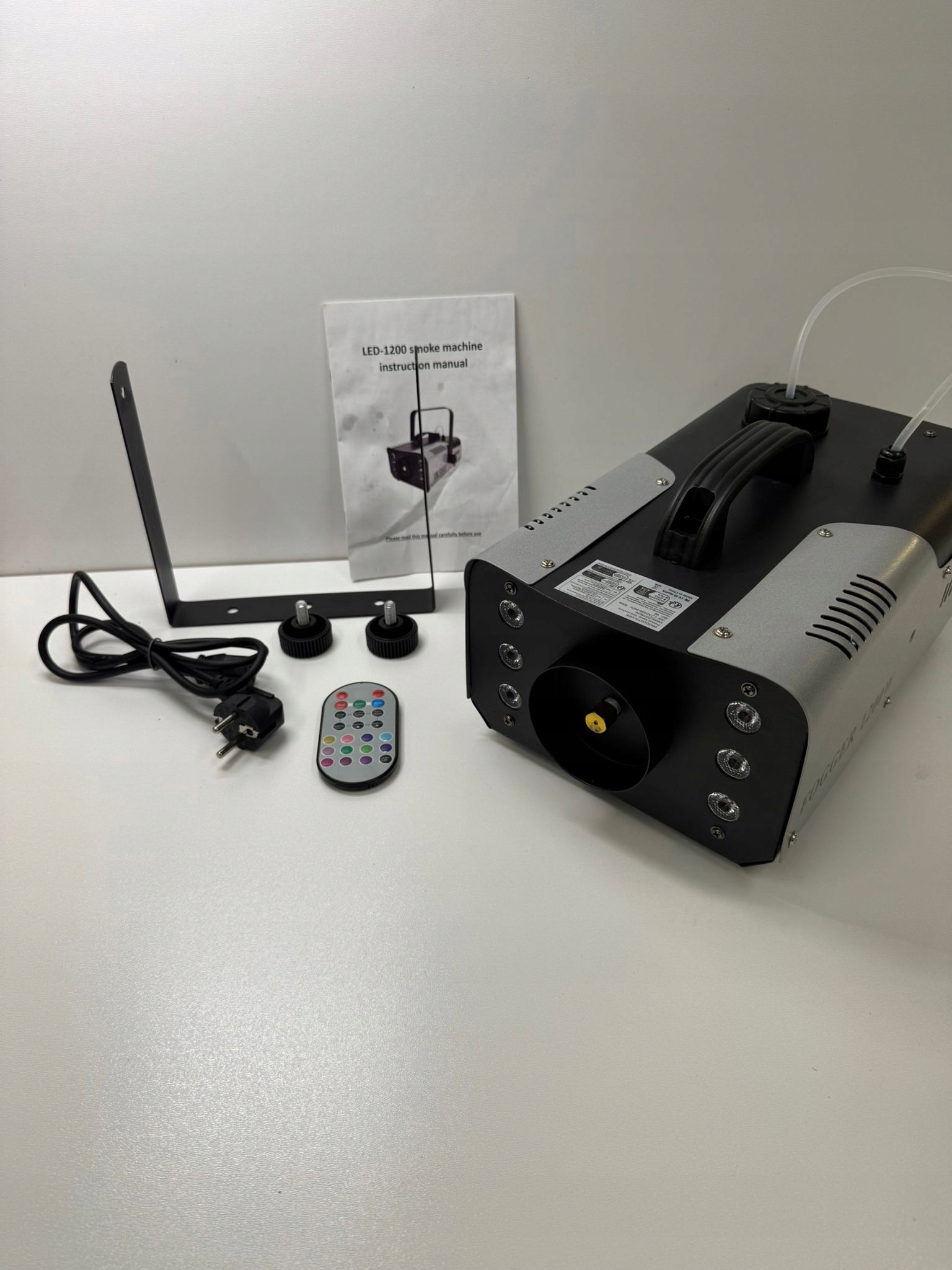 ✅ живлення 1200 Вт - інтенсивне випромінювання туману (160 м³/хв) з діапазоном до 3 метрів. 6 світлодіодів створює барвисте освітлення, синхронізоване з туманом.