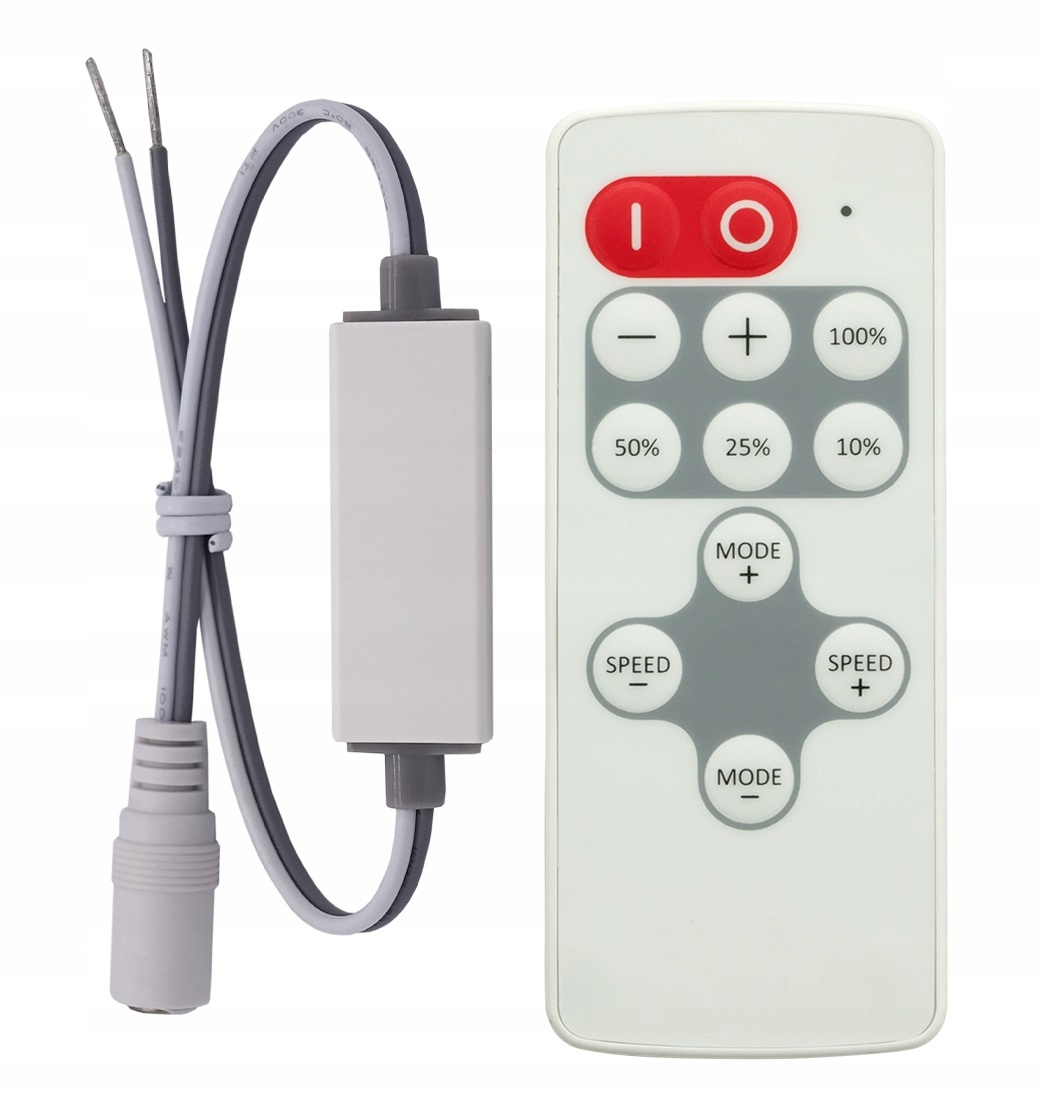 - розміри контролера: 50 x 15 x 7 мм; розміри пульта дистанційного керування: 87 x 36 x 8 мм.