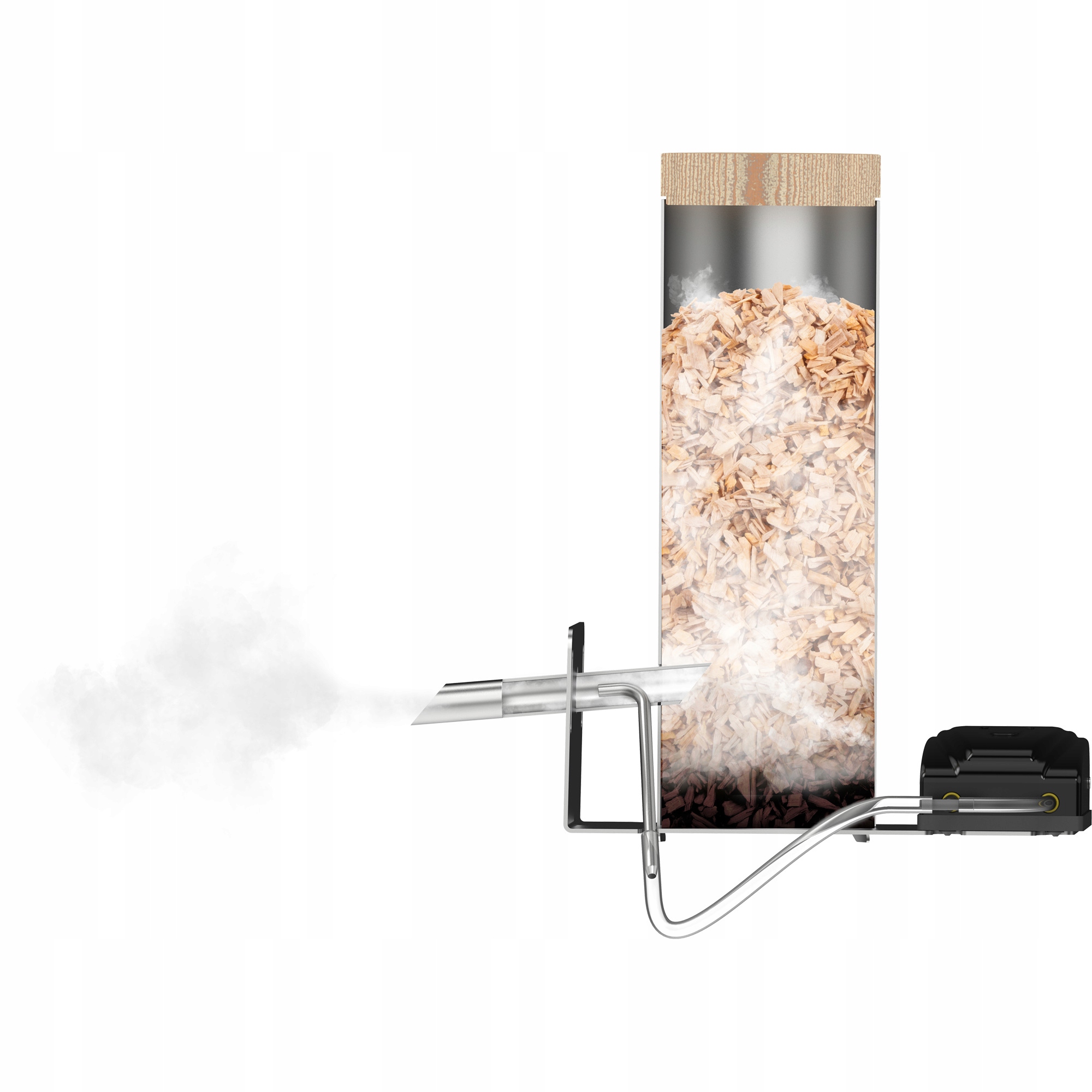 Насадка вводиться в коптильню під відповідним кутом, збільшуючи потік диму від обпаленої деревної стружки.