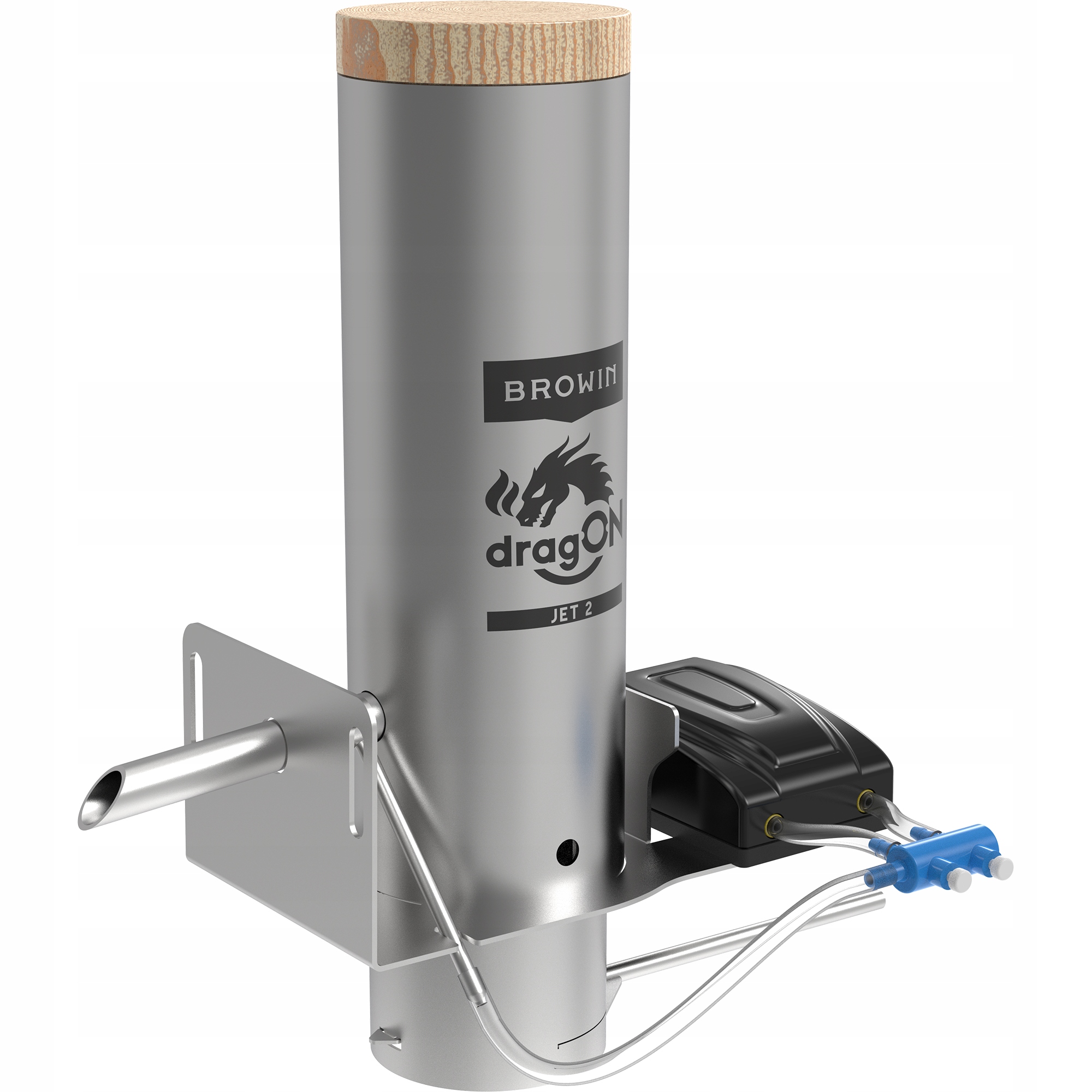 - Інноваційна насадка димогенератора - її конструкція з відповідним вирізом кінці, спеціальний трубний кут і підключений насос забезпечують ідеальне, рівномірне видування диму в коптильню та високу ефективність з низьким споживанням деревної тріски. Насадка вводиться в коптильню під кутом, який збільшує потік диму та допомагає мінімізувати накопичення осаду, який забиває типові труби під час відпалу деревної стружки. Повітряний насос підключається через шланг до кутової трубки, інтегрованої з насадкою.