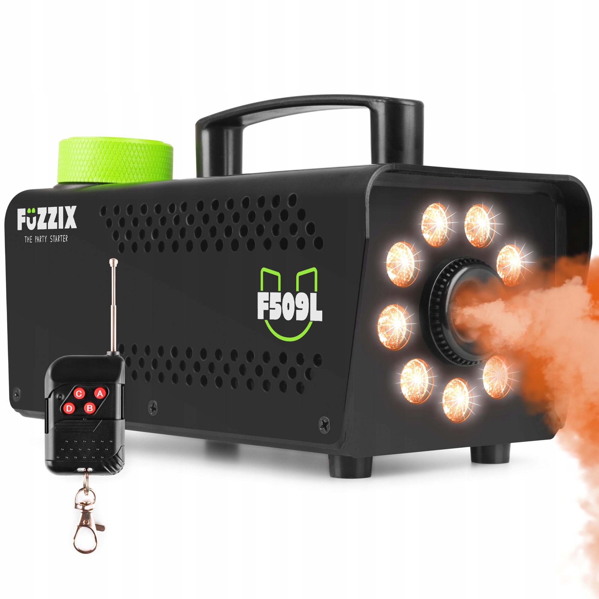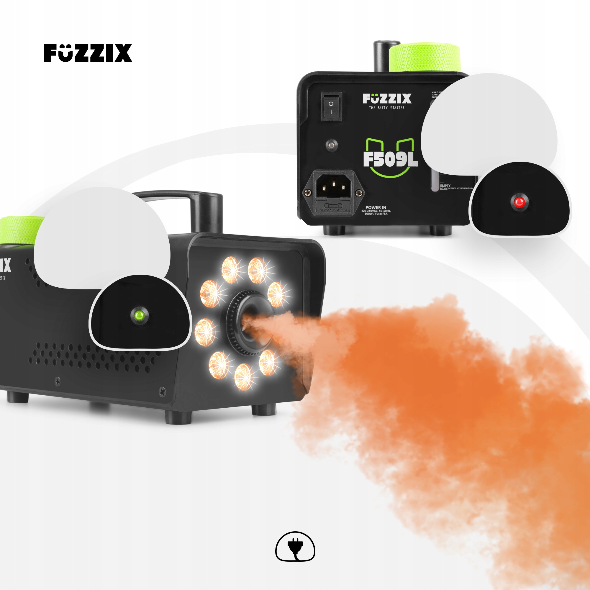 генератор диму F509L за 9 світлодіодним світлодіодом RGB завдяки сильному нагрівальному елементу димової машини Fuzzix, вони виробляють щільні хмари диму за кілька секунд. (Після нагрівання) Електронний термостат забезпечує постійне та надійне виробництво диму. Генератори диму Fuzzix доступні в різних розмірах та функціях, що полегшує пошук ідеальної димової машини для кожної вечірки. Від компактної та портативної до більшої та сильнішої - за кожну потребу буде машина для диму Fizzix.