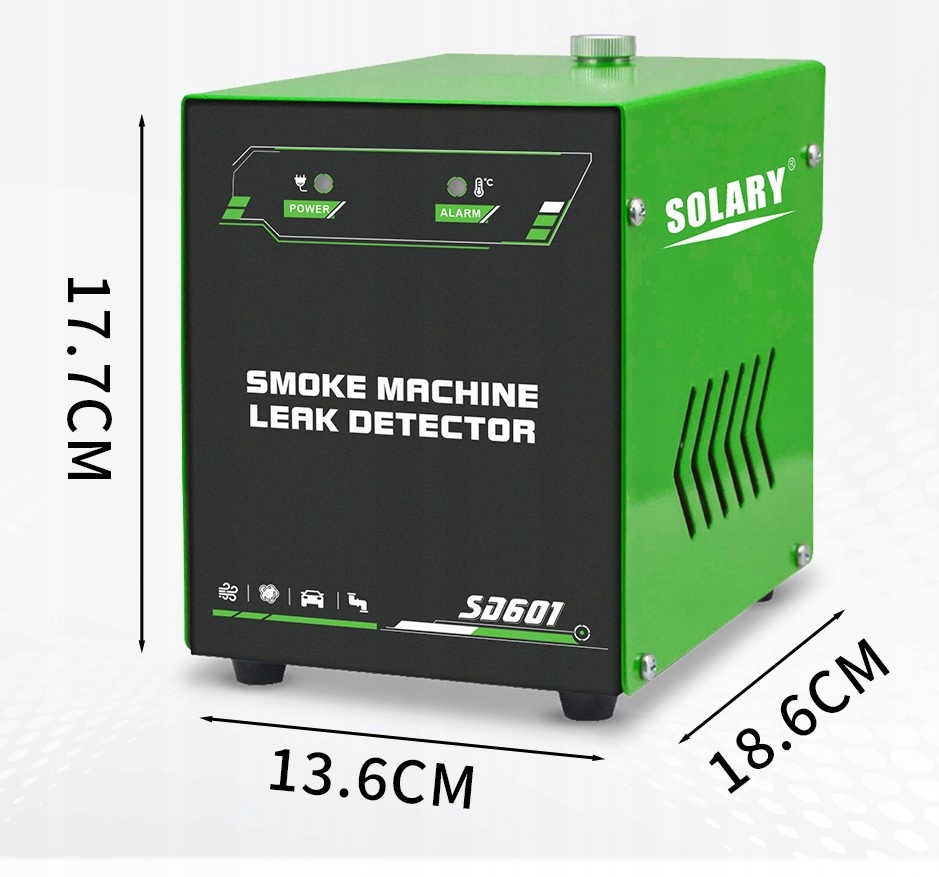 SOLARY SD601 інноваційний прилад, який перевіряє герметичність різних систем. За допомогою утвореного диму, який вводиться, наприклад, у впускну систему двигуна автомобіля і призначений для виявлення навіть мікровитоків, які спричинять, наприклад, втрату потужності двигуна. Призначений там, де необхідно перевірити герметичність закритих систем, напр. паливні лінії, впускні системи, баки тощо та широко використовується в автомобільній та промисловій галузях.
