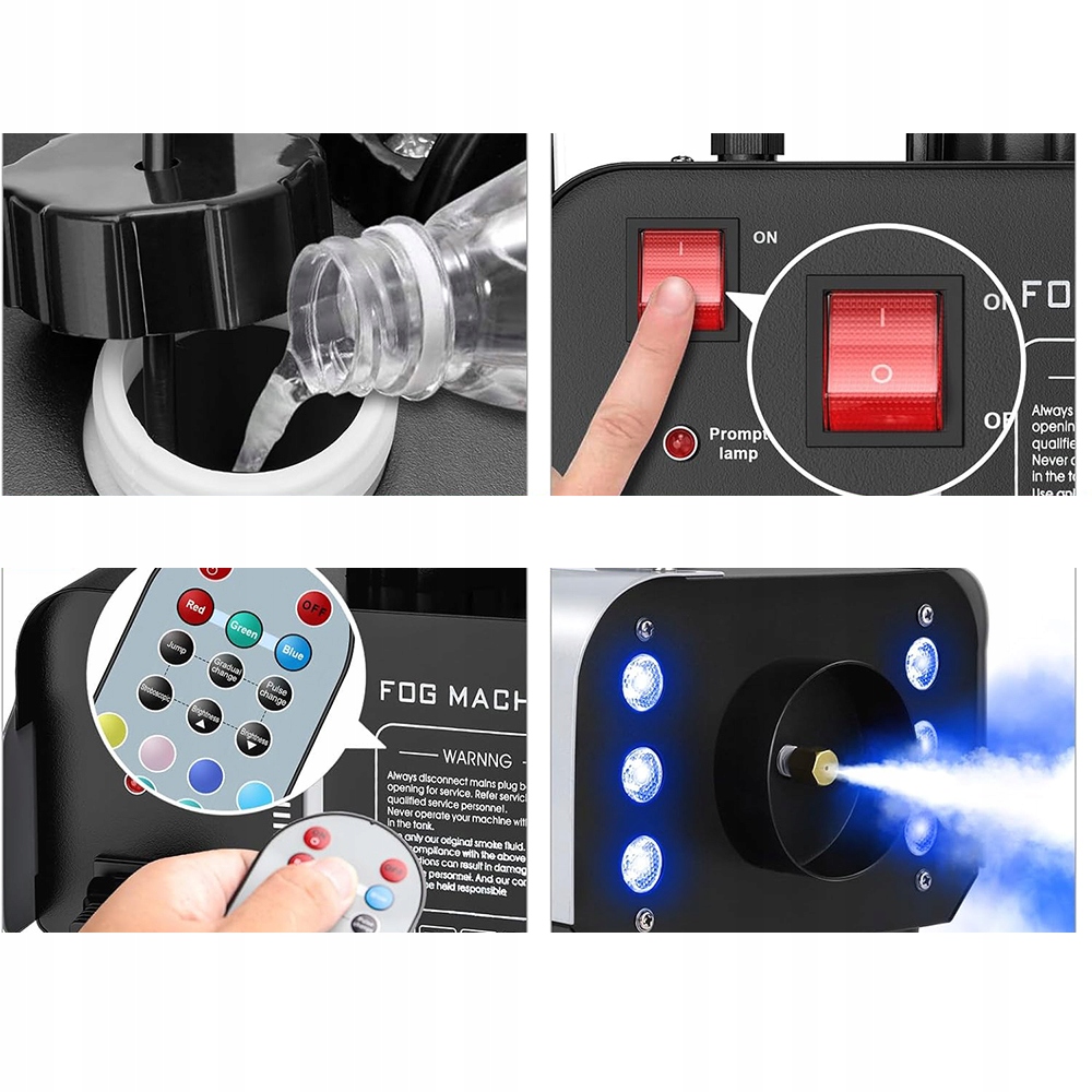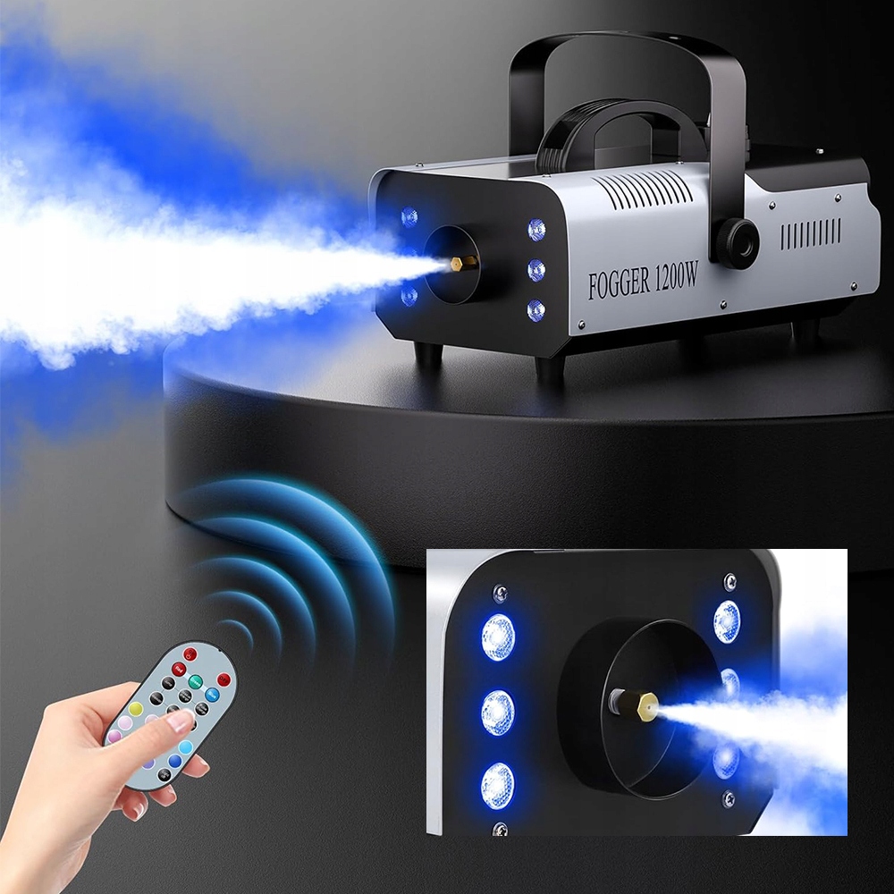 Багатофункціональна дим-машина, оснащена 6 світлодіодами RGB. Він має вражаюче освітлення, яке також створює туман, роблячи світло та візуальні ефекти чітко видимими, створюючи унікальну атмосферу та розважаючи аудиторію.