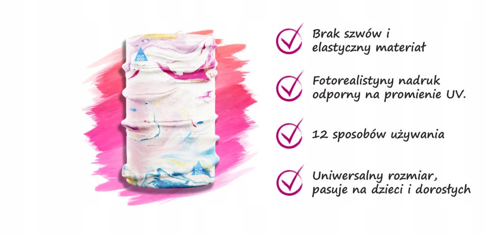 Багатофункціональна хустка / димохід - надзвичайно корисний елемент одягу на відкритому повітрі. Її гнучкий матеріал не дратує шкіру, а численні способи носіння означають, що він використовується в багатьох ситуаціях. Commom на шиї друк, виготовлений методом сублімації , характеризує його, характеризується інтенсивними кольорами та високою стійкістю до організації та УФ -променів.