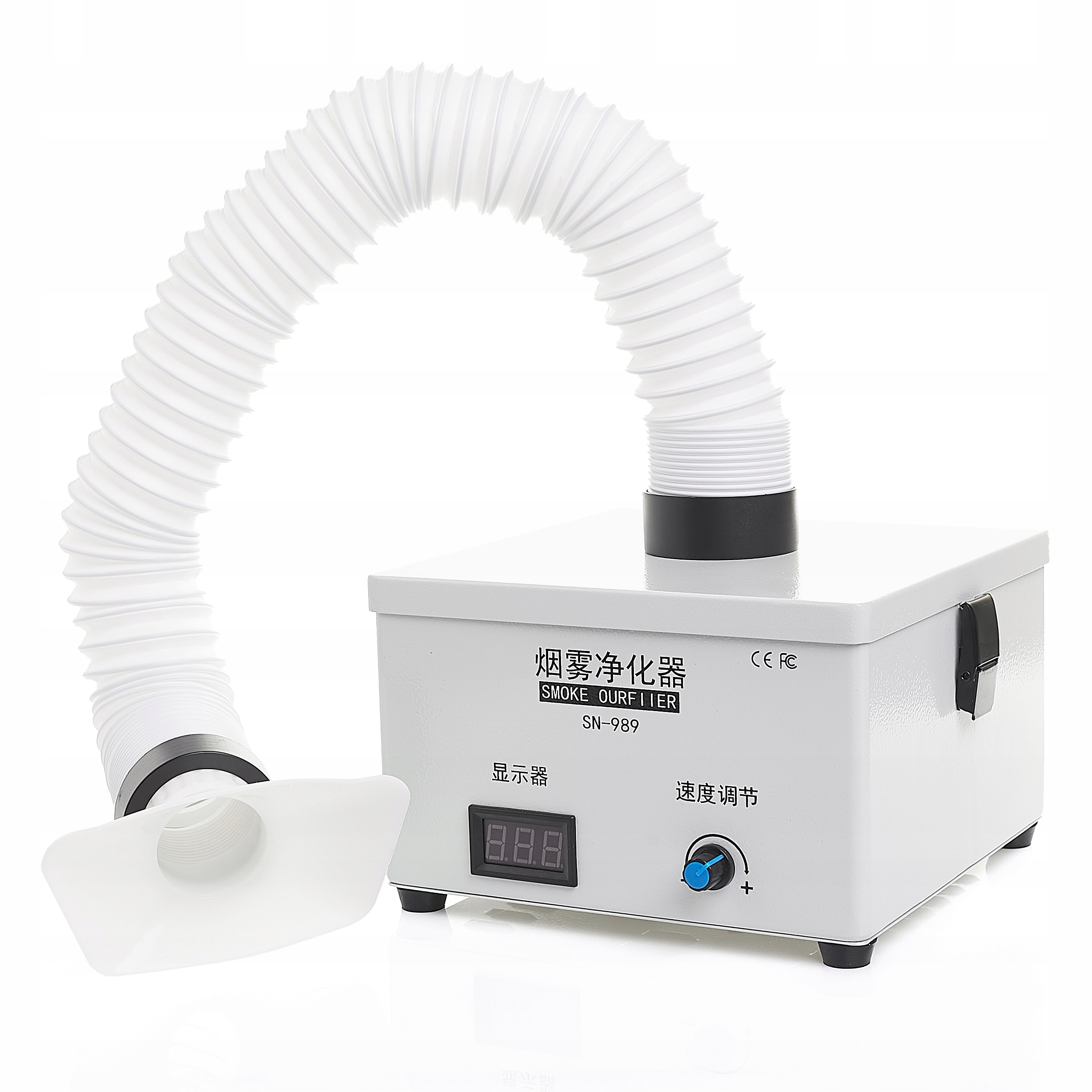 Поглинач ідеально підходить для паяння, коли виділяються пари та дим, хімічні сполуки та інші випари, шкідливі для здоров’я. Поглинач відсмоктує дим від місця пайки і «пропускає» його через фільтр. Він оснащений довгою трубкою, яка дозволяє легко маніпулювати та розташовувати поглинач безпосередньо біля спаюваного елемента.