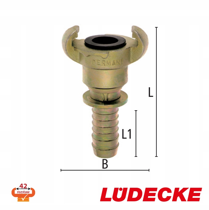 Поворотний зажимний з’єднувач із фіксуючим кільцем для хомутів – шланговий з’єднувач діаметром 13 мм – LÜDECKE – DIN 3489 – SKB 13-DR