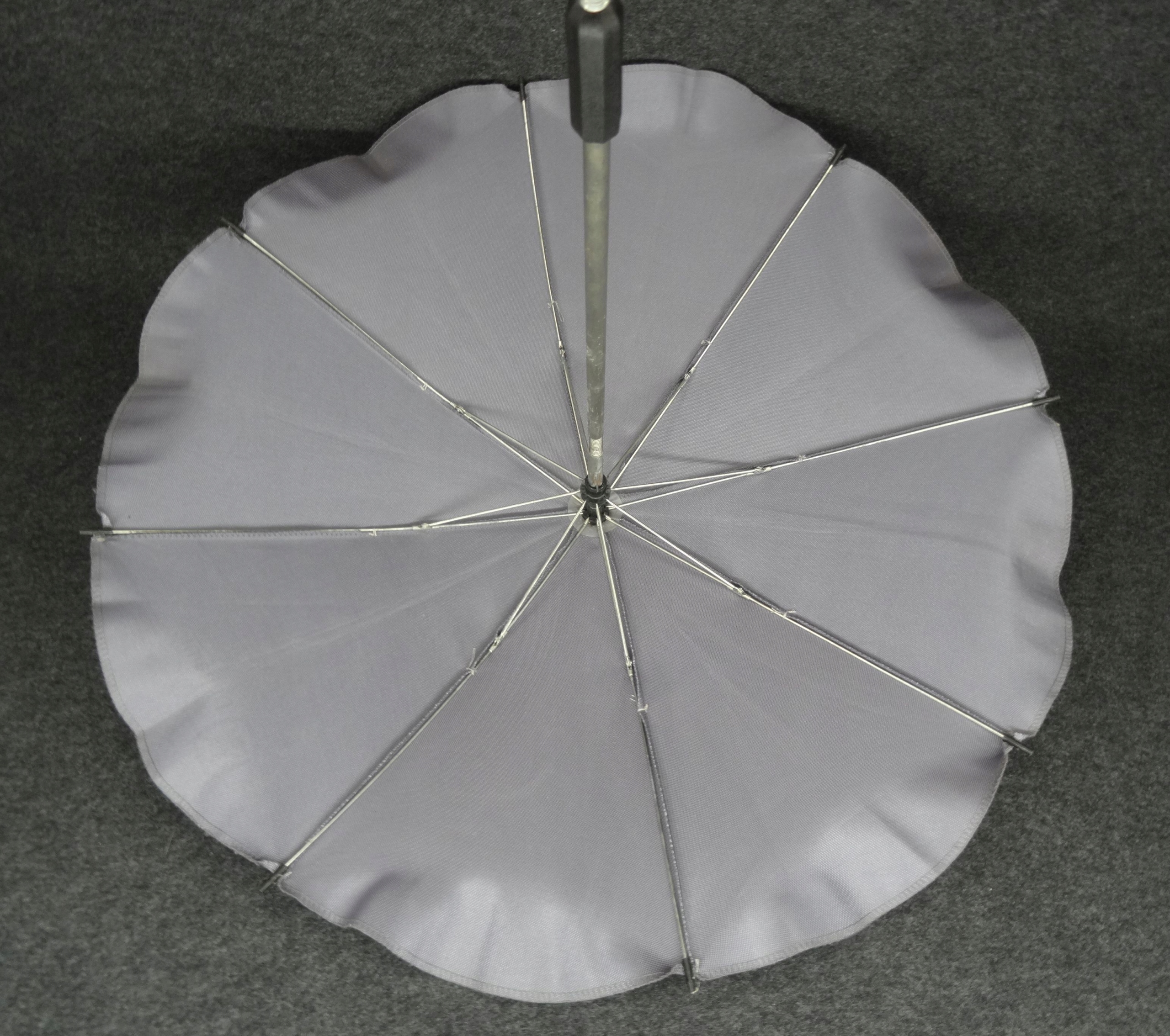 парасолька для динамічної дитячої візки. Парасолька з двома металевими елементами, які дозволяють згинати парасольку в будь -якому напрямку. З кріпленням кручення є затискач, який тканин парасольки від власника.