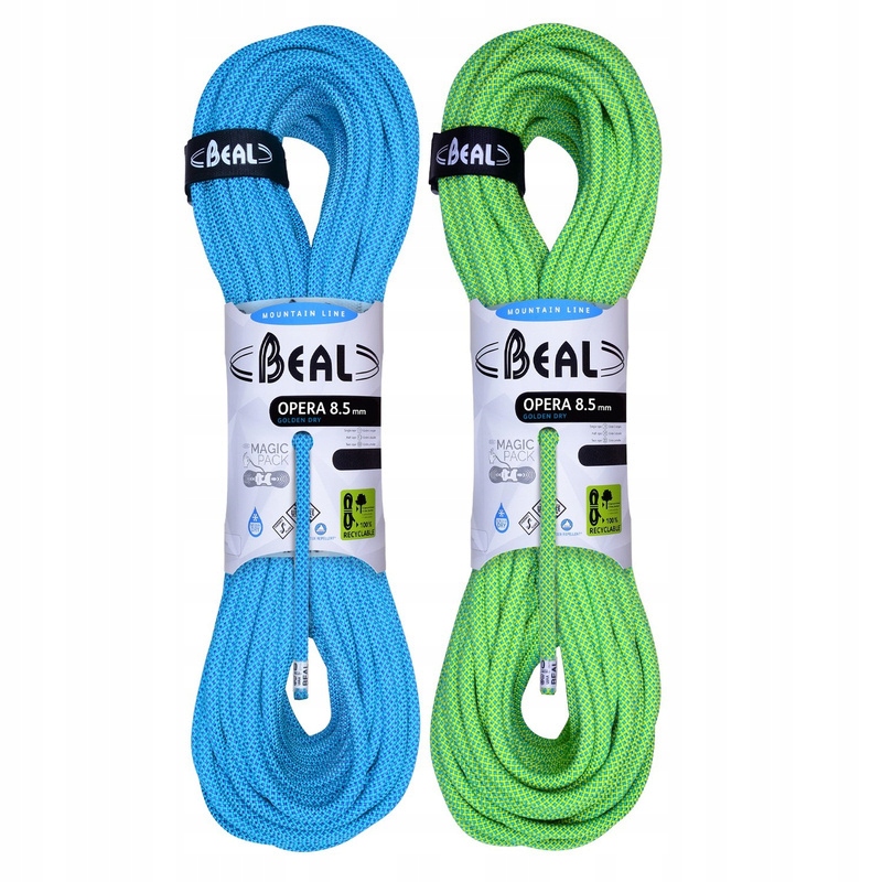 Одиночна мотузка OPERA 8,5 мм вагою лише 48 г/метр є найтоншою та найлегшою на ринку. Він також сертифікований як подвійний та здвоєний трос. Ця лінія використовує найкращі технології, які використовує Beal: низька сила удару, технологія UNICORE, захист Dry Cover і сертифікат UIAA Water Repellent (версія Golden Dry). OPERA 8,5 мм призначена для найвибагливіших альпіністів.