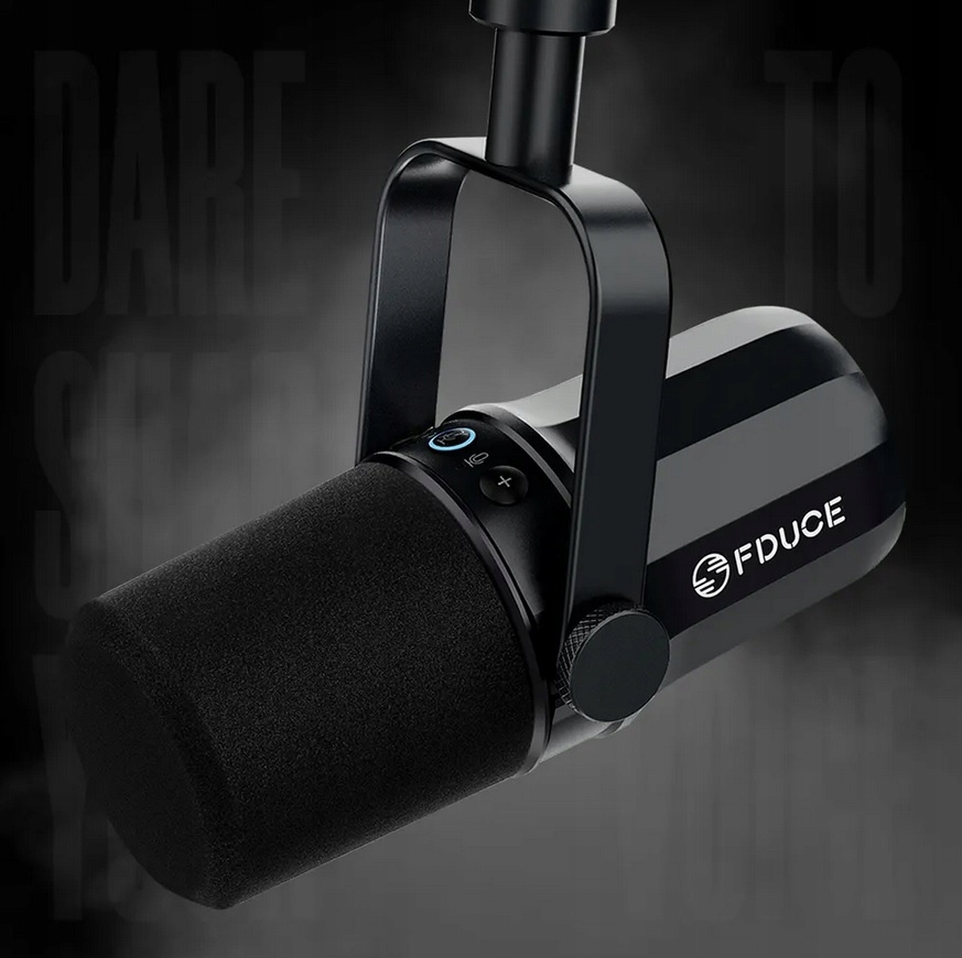 Динамічний вокальний мікрофон FDUCE SL40 для подкастів, ігор, прямих трансляцій і запису, вбудований вихід для навушників, світлодіодна кнопка вимкнення звуку, металевий кардіоїдний мікрофон USB/XLR, технологія голосової ізоляції
