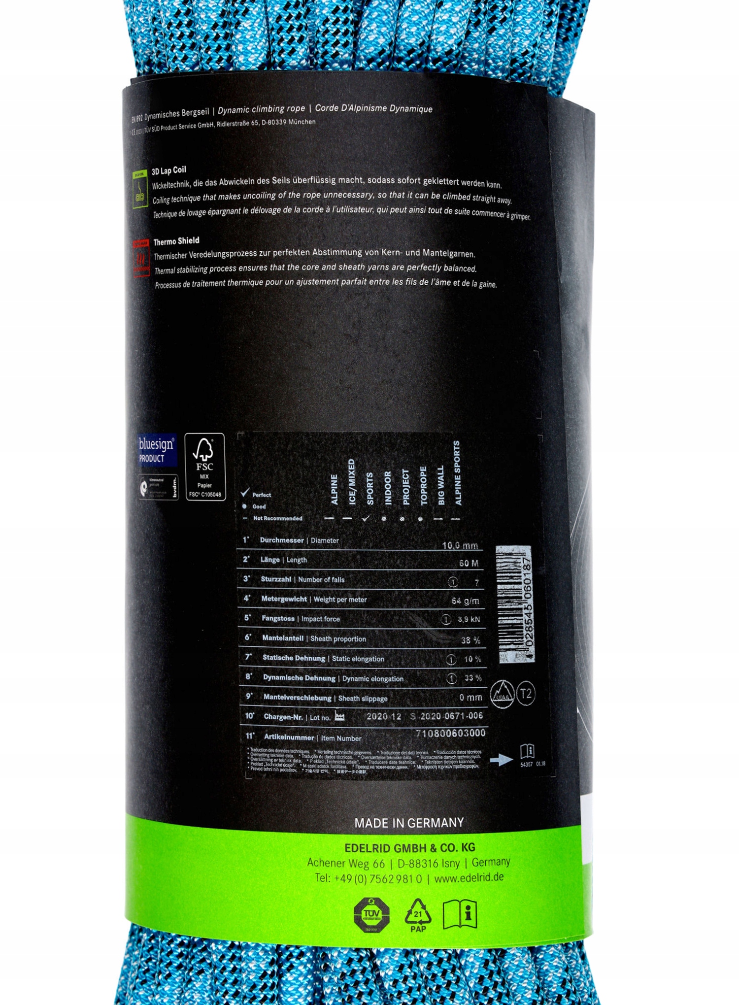 Його вдосконалений дизайн дозволить вам розправити крила під час щоденних тренувань на стіні, а технології, що використовуються в ньому, також дозволять використовувати його під час походів на скелі та спортивного скелелазіння на природних маршрутах. Діаметр 10 мм означає не тільки більшу безпеку експлуатації, але також забезпечує більшу міцність мотузки, що ви особливо оціните під час походів або лазіння на вудку. Висока якість виготовлення, характерна для бренду Edelrid, поєднується з надзвичайною витонченістю, яка виправдає очікування навіть найвимогливіших користувачів.