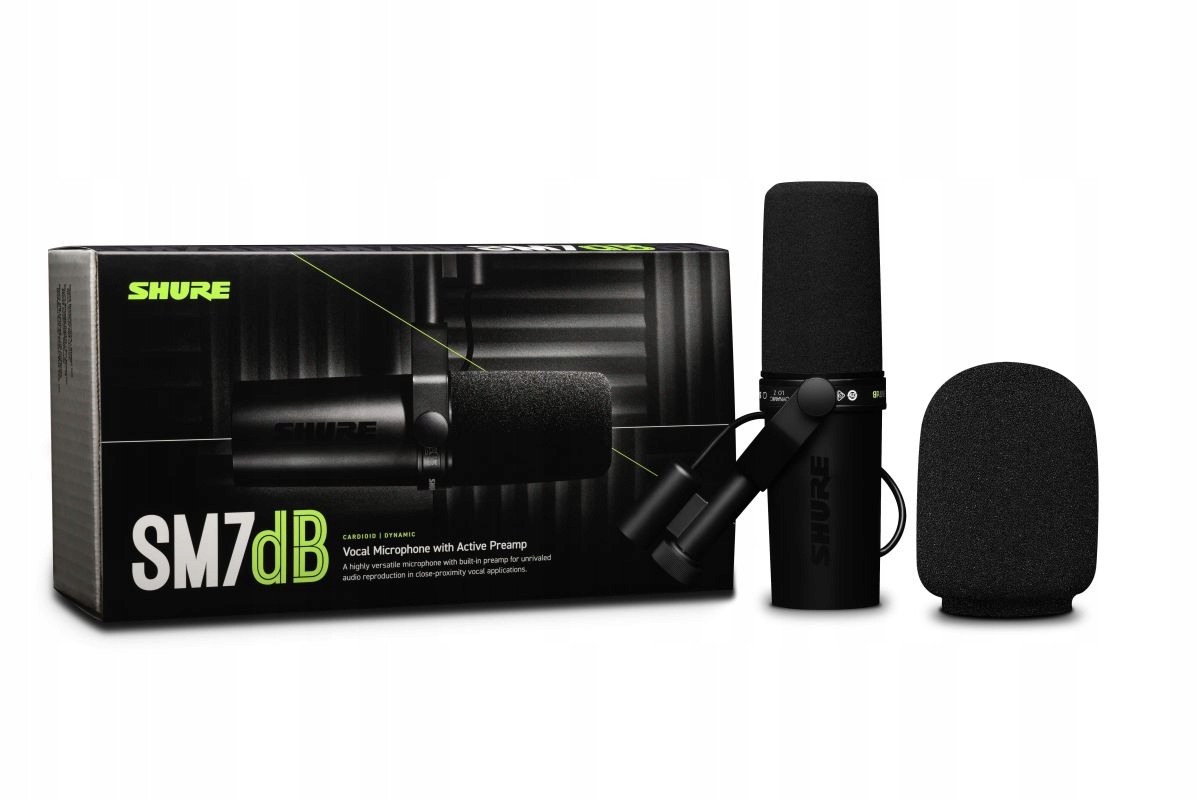 Shure SM7dB — динамічний мікрофон із вбудованим попереднім підсилювачем, що забезпечує посилення до +28 дБ; підходить для будь-якого інтерфейсу з входом XLR.
