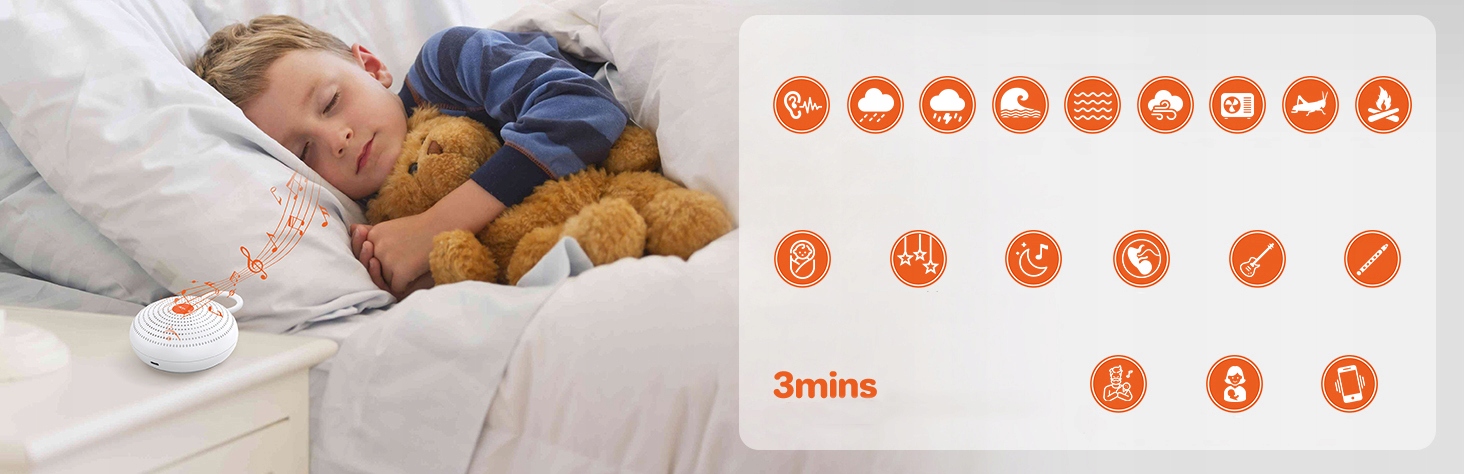 ✨ засіб для сну дитини з 24 заспокійливими звуками, включаючи 16 звуків білого кольору та природних звуків, 8 звуків дитини та музику, це стосується немовлятам і дорослим;
