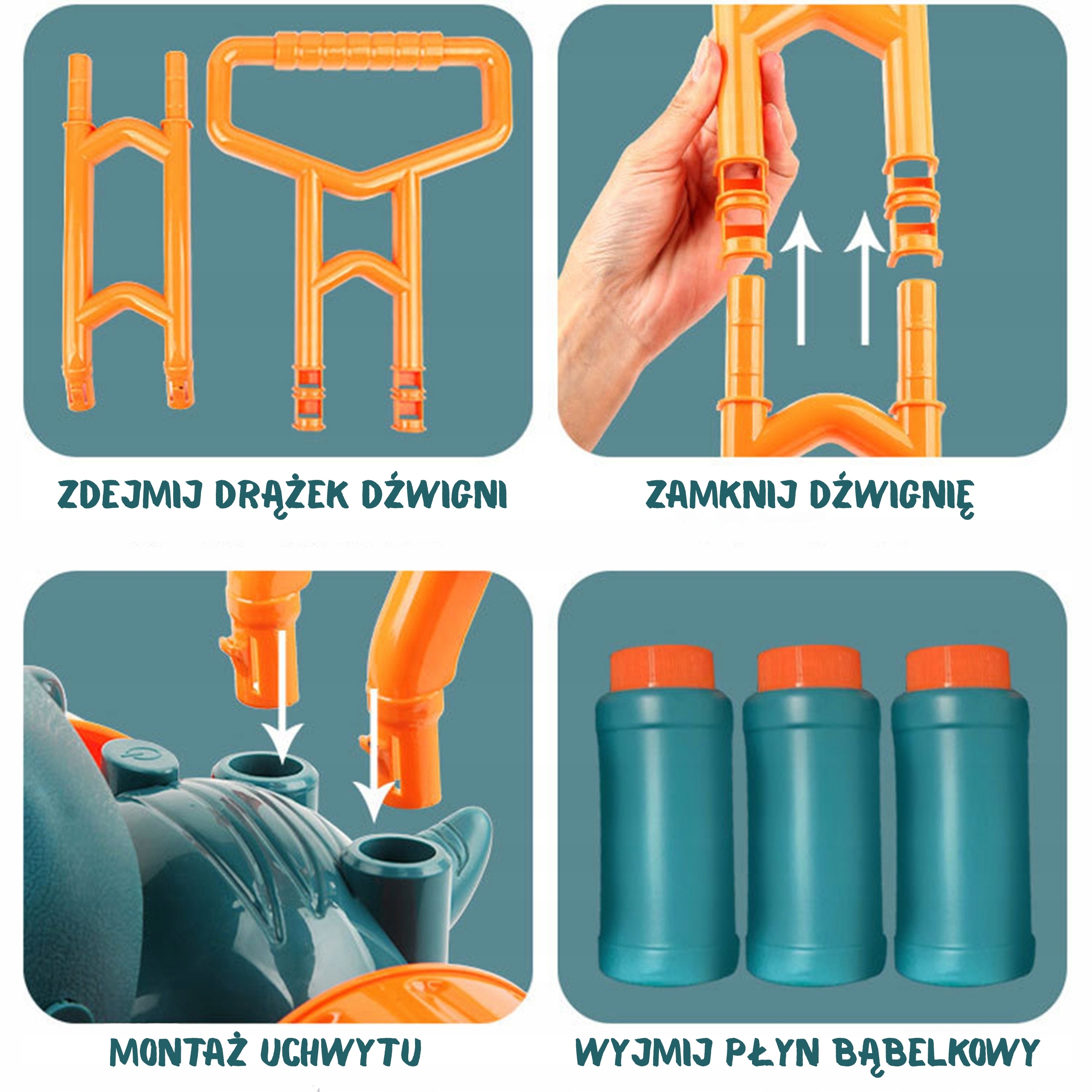 - ✔️ dinosaur motif - colorful, friendly design with large eyes, wide mouth and orange wheels encourages children to actively play The function of automatic bubbles - after pouring the liquid and pressing the toy button, releases hundreds of Бульбашки з рота динозавра