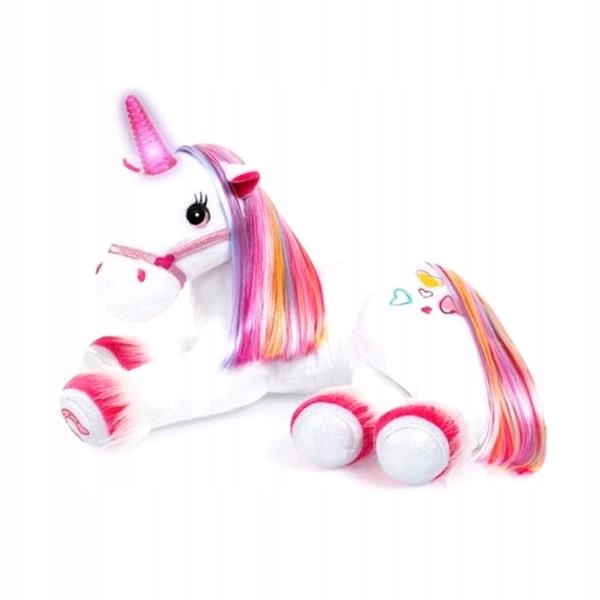 Красивий плюшевий єдиноріг дозволяє дітям поринути у світ уяви. При натисканні на копито чарівним чином загоряється гудок і при цьому лунає гарна, казкова музика. Якщо натиснути на його вишиті сердечка, ви побачите подальші світлові ефекти на його щоках і почуєте інші чарівні звуки. Єдиноріг просто зачаровує дітей своїми великими очима та різнокольоровою гривою. Він одразу стає їхнім улюбленим товаришем по грі.