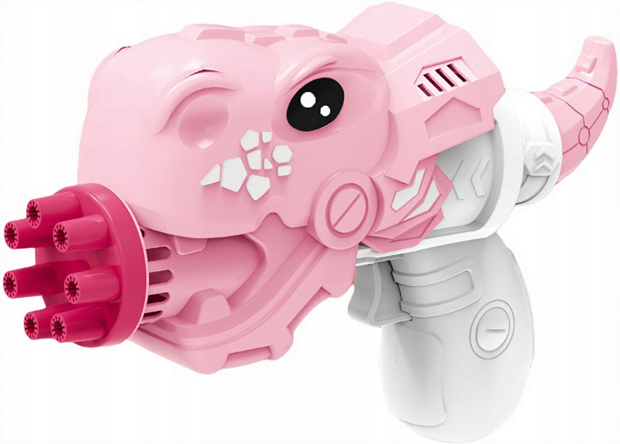 Нова модель пістолета для пускання мильних бульбашок у формі динозавра. Просто покладіть пістолет на основу, потім натисніть на спусковий гачок пістолета, і ви отримаєте магію сотень мильних бульбашок.