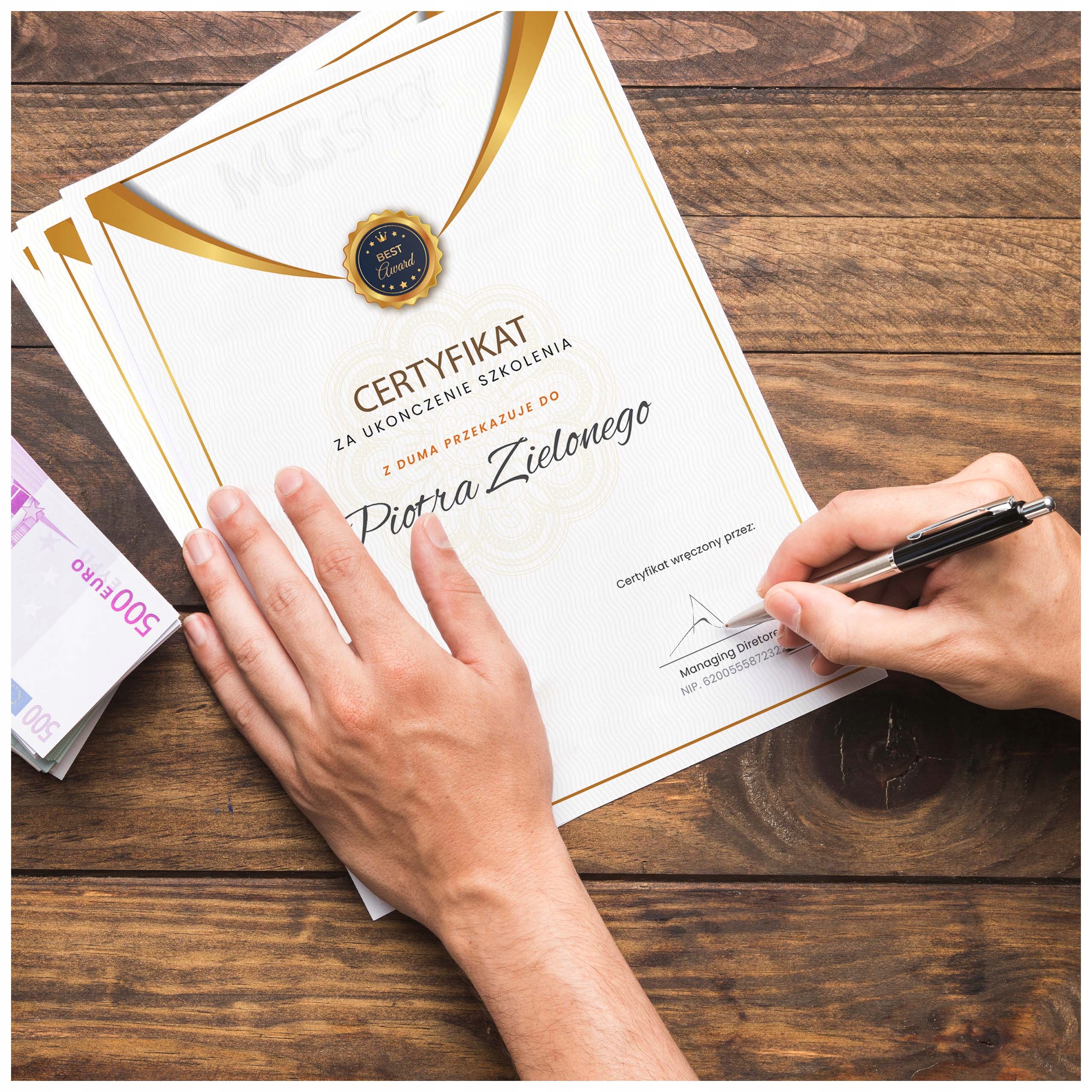 Ми пропонуємо дипломи у форматах A4 та A5 (1 і 2, відповідно), надруковані на високій якості 350 г крейдяного паперу , з глянцевою або матовою обробкою. Ідеально підходить для церемоній, змагань та сертифікатів завершення курсів. ART)