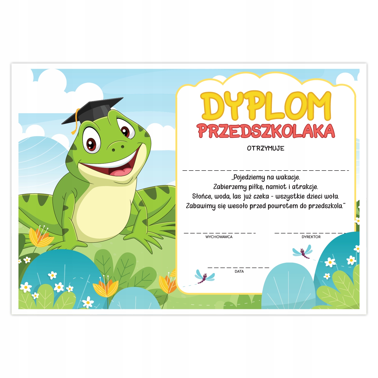 Диплом дитячого садка наприкінці року - żabka (великий A4) - Learnhow