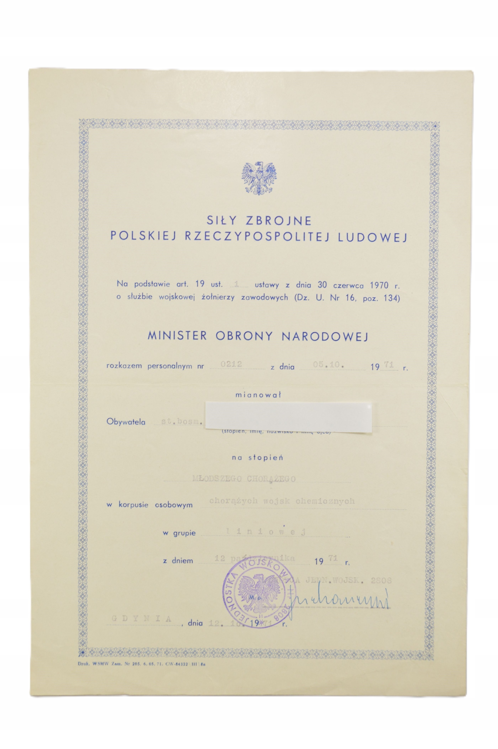 ДИПЛОМ ВІЙСЬКОВО-МОРСЬКОГО ФЛОТУ PRL PRL ПРИЗНАЧЕННЯ МОЛОДШИЙ ГАРАНТ 1971