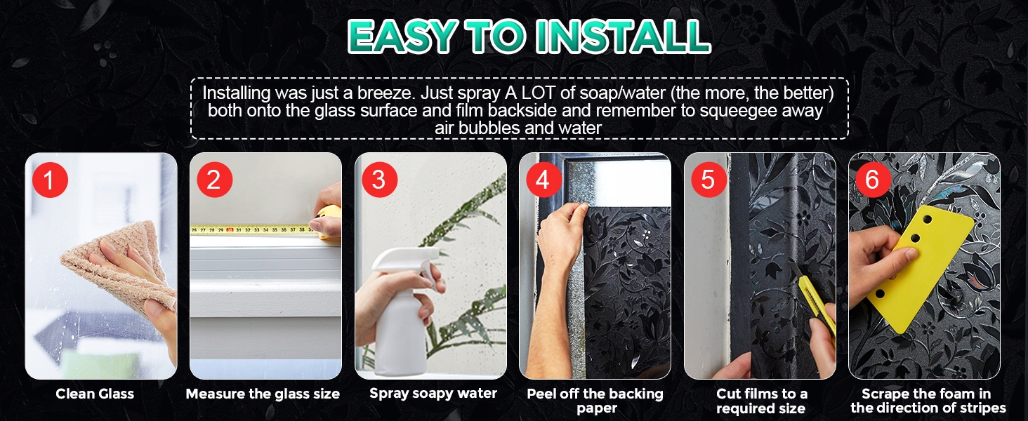 - Цінні поради: Будь ласка, очистіть пил з вікон; Якщо ви хочете отримати 100% затінення, вам потрібно дуже обережно виміряти та скоротити розмір; Під час вставки обприскайте віконну та віконну фольгу великою кількістю води і використовуйте скребок, щоб повністю злити зайву воду та бульбашки; Використання мильної та мильної води може збільшити в'язкість ~