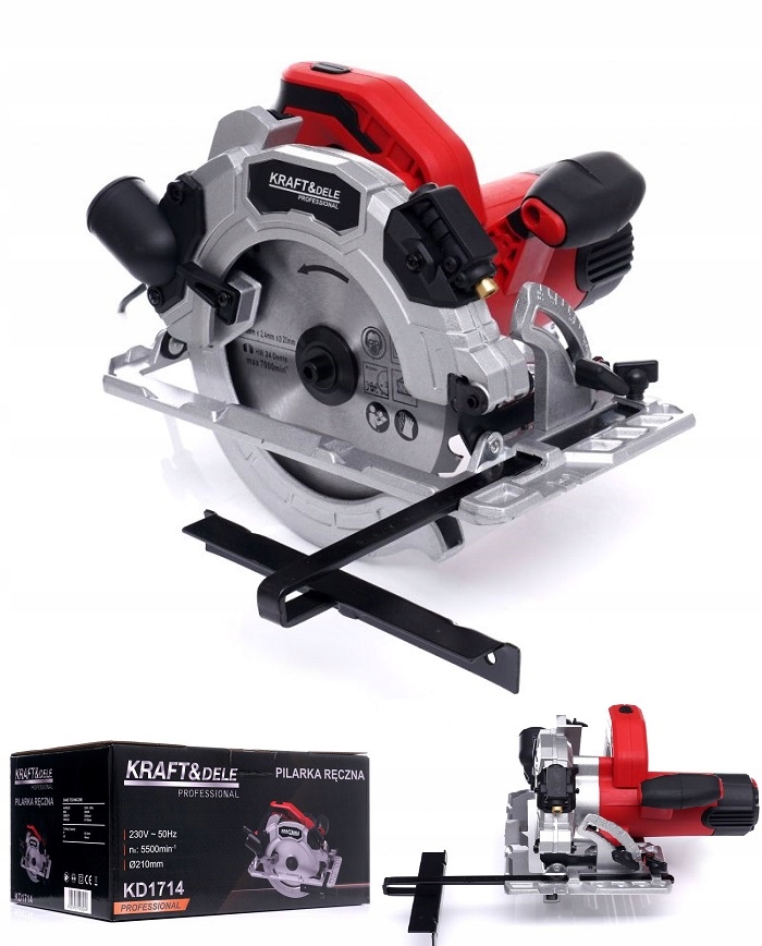 Ручна пила KD1714 фірми Kraft&Dele використовується для поздовжнього та поперечного розпилу по прямій або під кутом деревини та деревоподібних виробів. як майстерні, так і домашню роботу. Оснащений диском діаметром 185 мм. Максимальна глибина різу становить 63,5 мм. Лезо можна нахиляти до кута 45°.