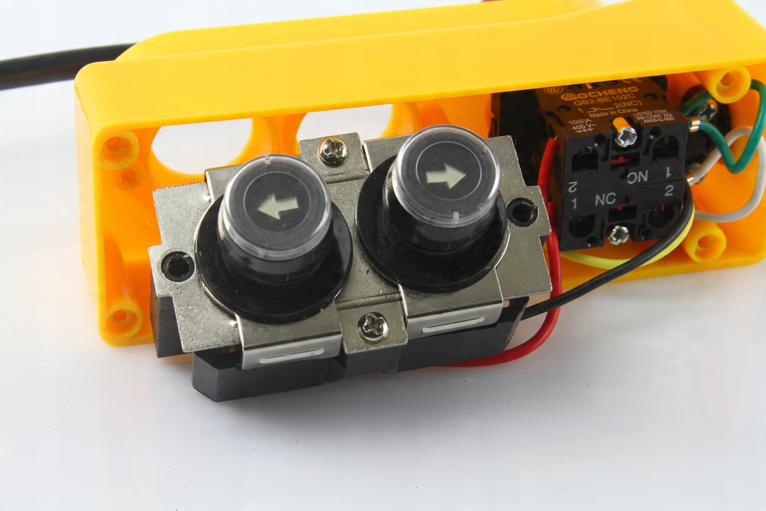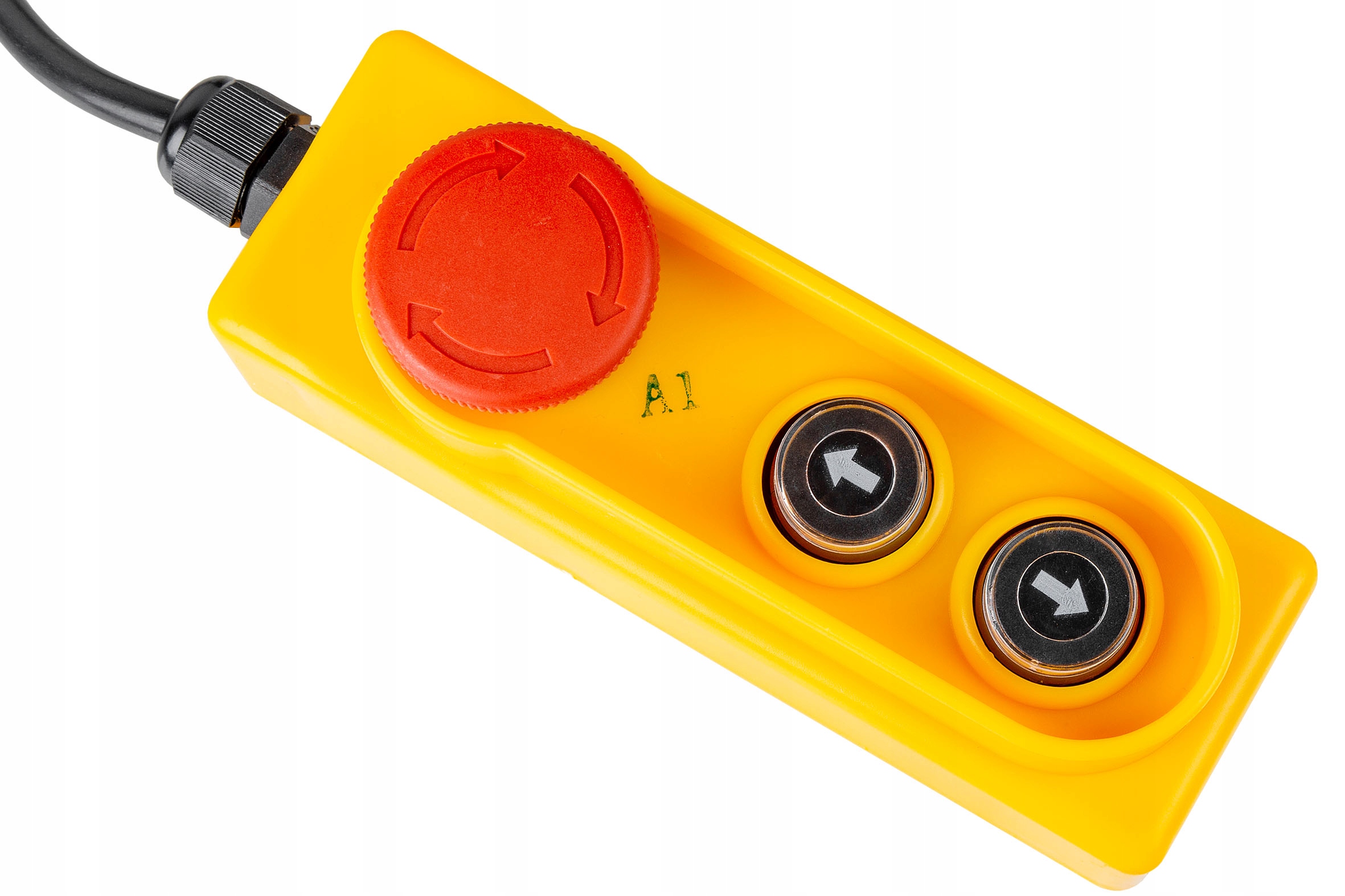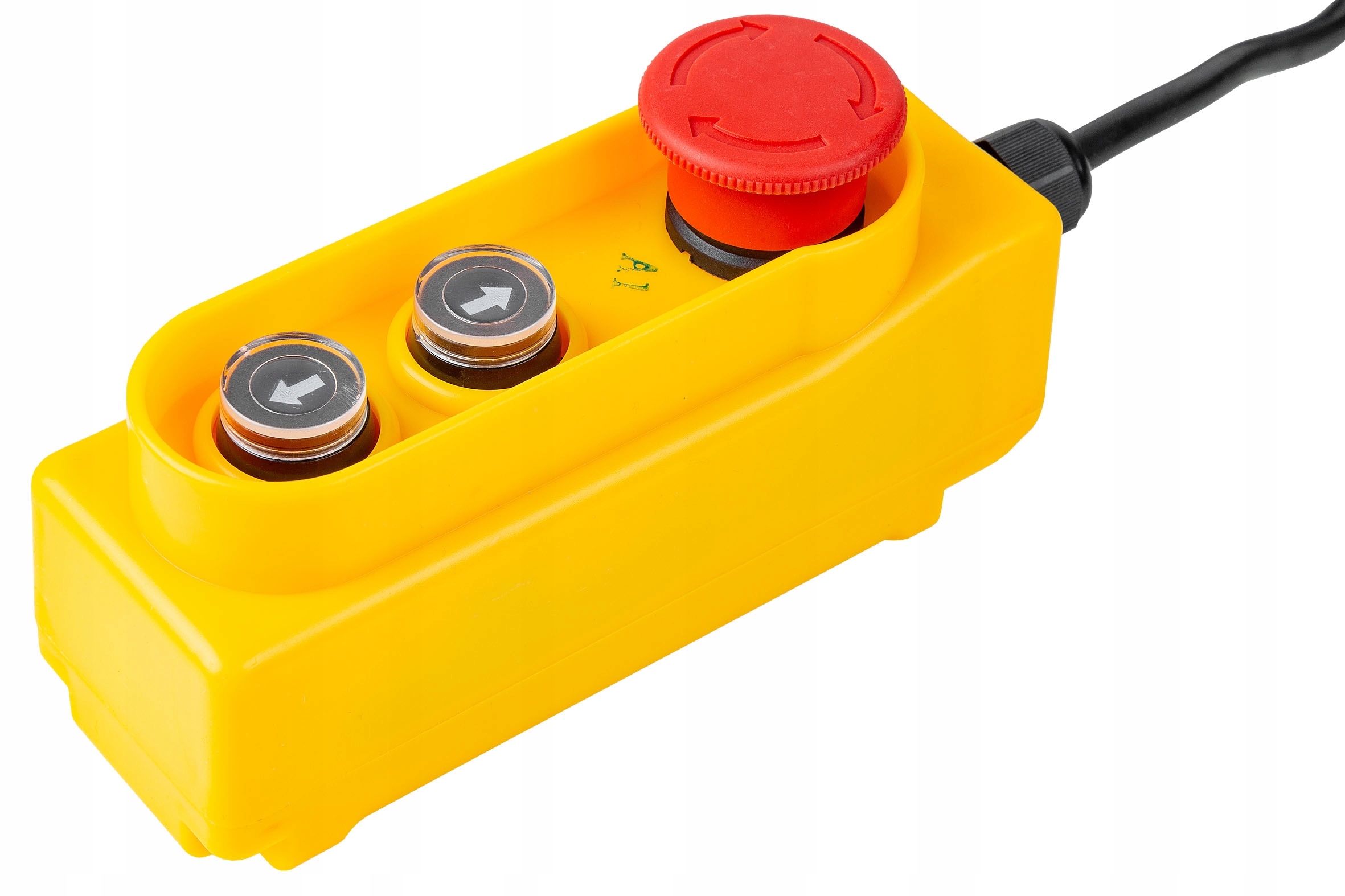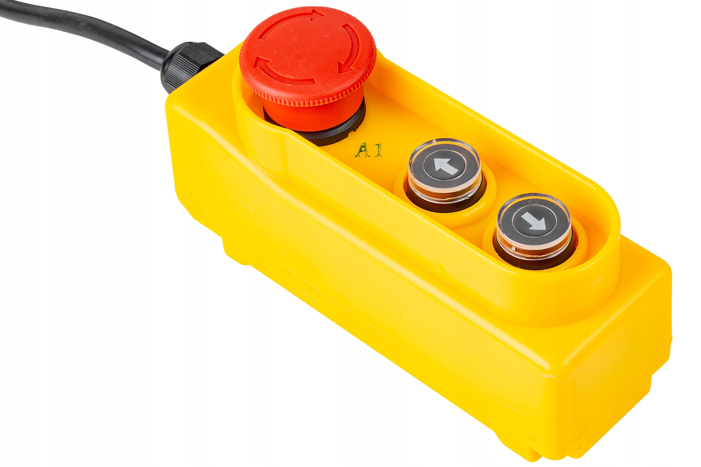 Кнопка перемикача / провідна пілот 3 / вниз для управління напрямком обертання двигуна, ліфта автомобіля, подачі тощо. Віддалене управління оснащене кнопкою аварійного переривання ланцюга - гриб із замком NC. Він має міцний корпус.