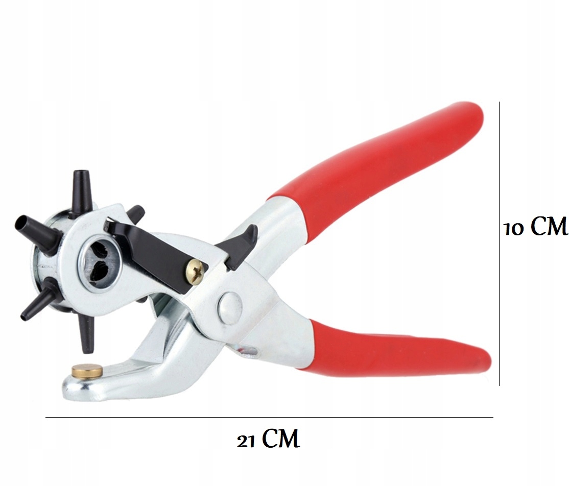 Пробійники мають 6 різних розмірів отворів: 2 мм, 3 мм, 3,5 мм, 4 мм, 4,5 мм, 5 мм. Міцні фіксатори виготовлені з високоякісної сталі, а ручка покрита гумою проти ковзання.