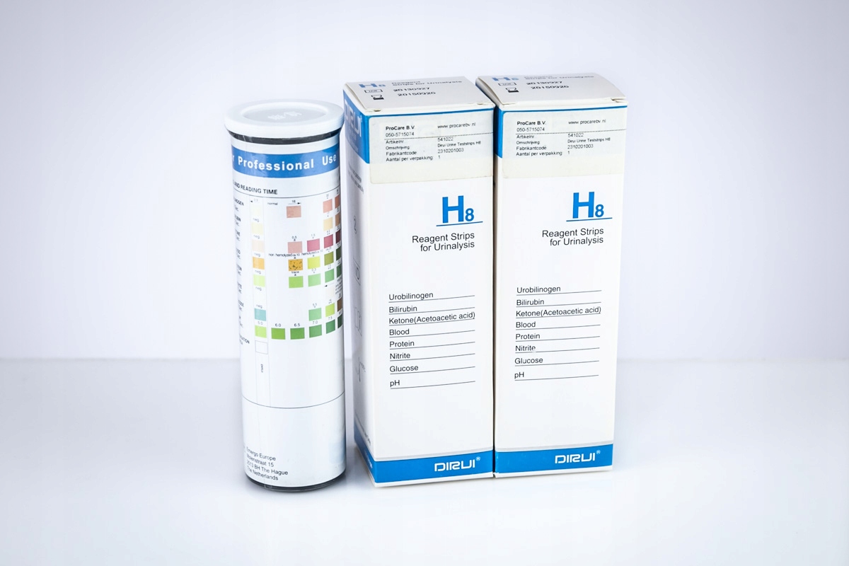 - Тестові елементи: уроробіліноген, білірубін, кетони, кров, білки, азити, лейкоцит, глюкоза, специфічні, фахівці, фальшиві
