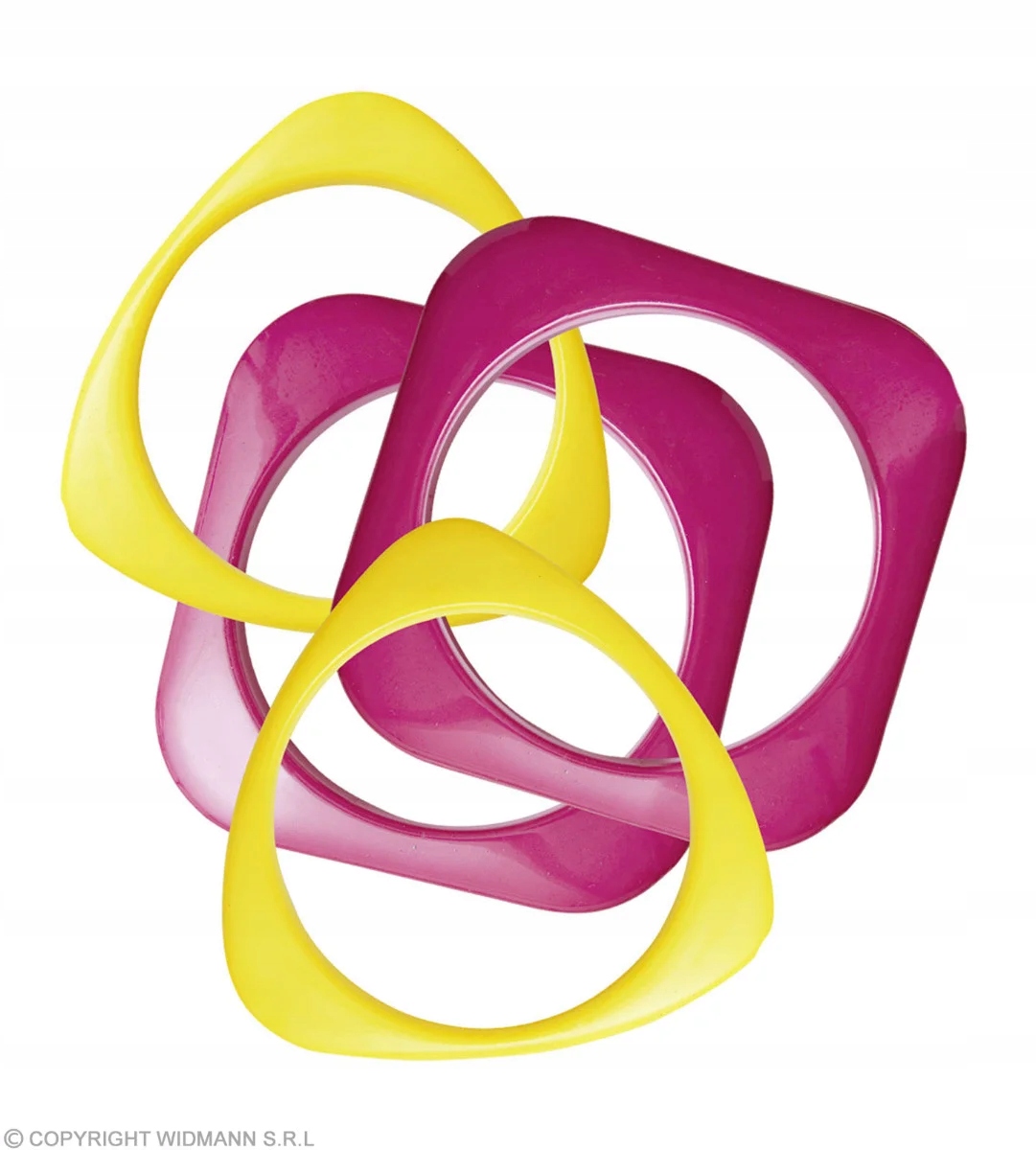 Інтенсивно рожеві та жовті браслети - чудове доповнення до вашого домашнього дискотечного костюма. Ці ювелірні елементи забезпечать комфорт під час шалених танців і доповнюють кожне створення поту/дискотеки у стилі 80 -х та 90 -х років.