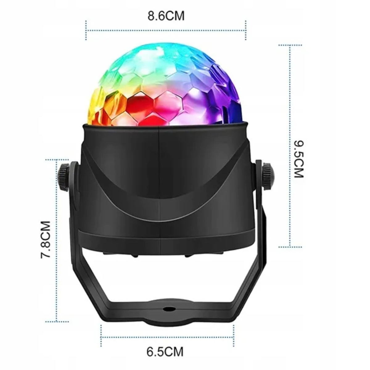 Обертова світлодіодна диско-куля RGB є ідеальним пристроєм, який дозволяє створити атмосферу вечірки вдома чи під час різноманітних заходів. Завдяки вбудованим світлодіодним індикаторам трьох кольорів і звуковому датчику проектор реагує на ритм музики, створюючи захоплюючий ефект. підсвічування стін і стелі. М’яч компактний, його легко зібрати та контролювати, а пульт дистанційного керування, що входить у комплект, дозволяє зручно керувати світлом.