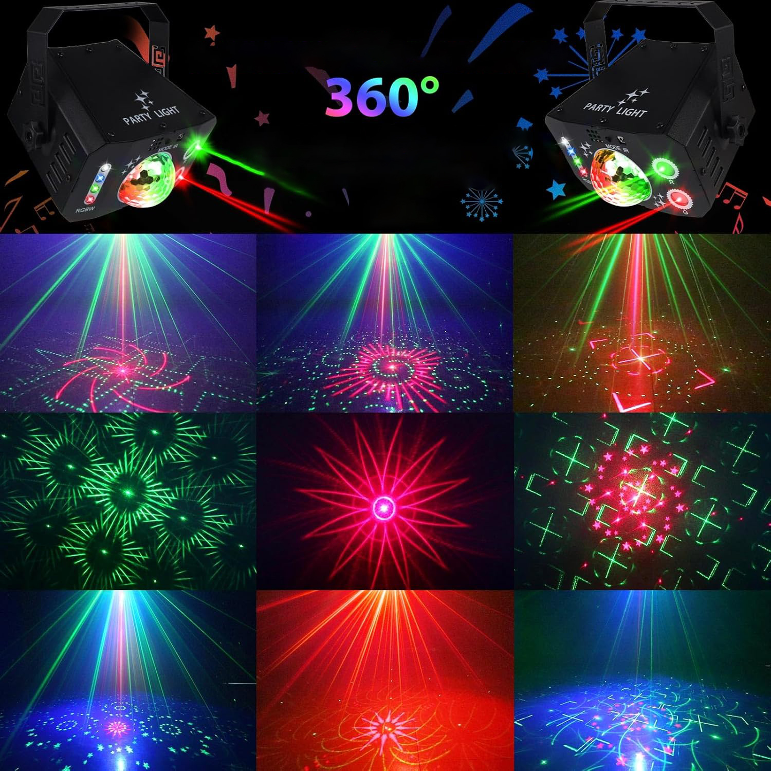 - Музичний режим -це широкий світлий легкий куля / світлодіодний візерунок / червона та зелена зірка / світлодіодна підсвічування RGBW, що змінюється на ритм навколишньої музики.