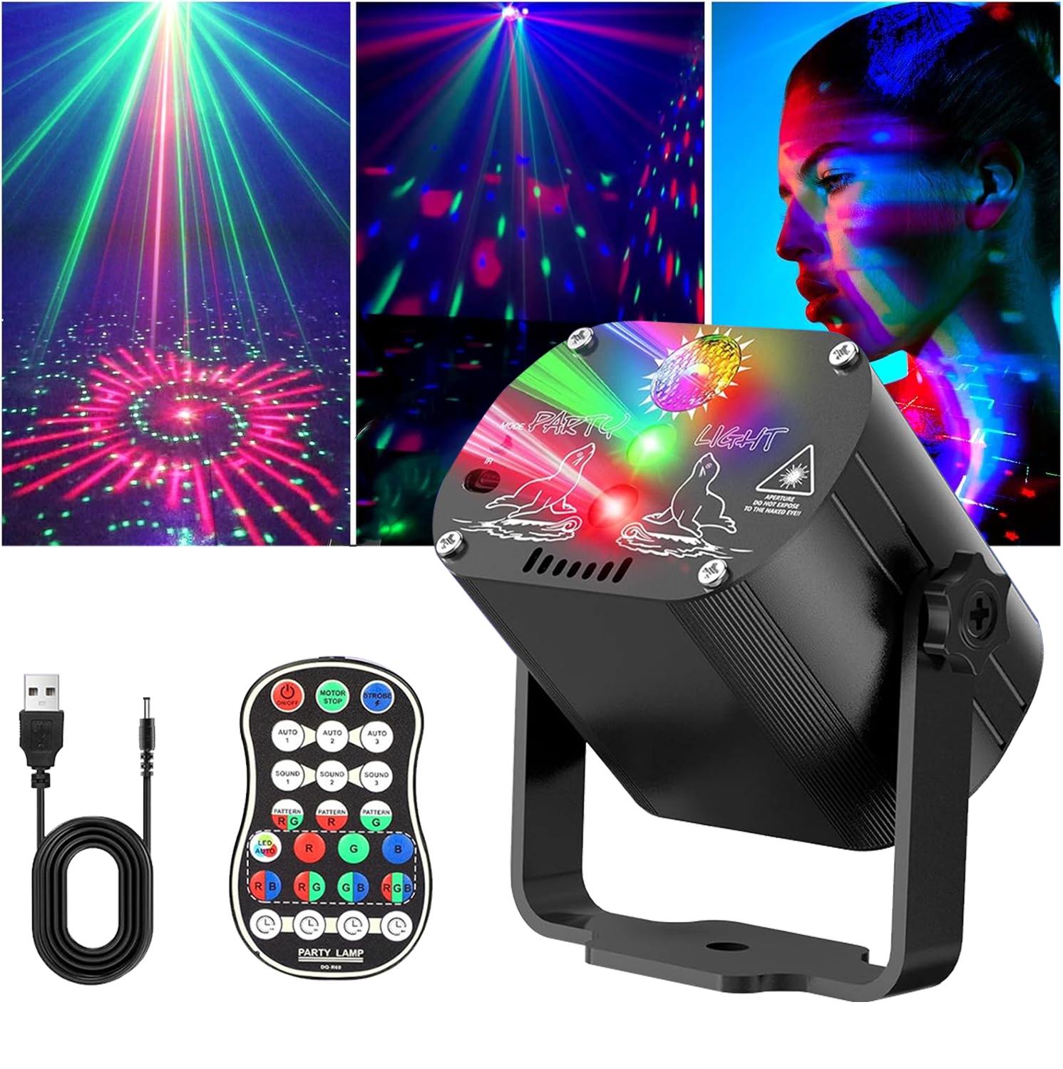 Світлодіодна дискотека, освітлення музики, 60 різних конструкцій, ефект строби, освітлення вечірок з пультом дистанційного керування та 2-метровий кабель для постачання USB для сім'ї, дискотеки, події для дітей, клуб, день народження, весілля (чорний)