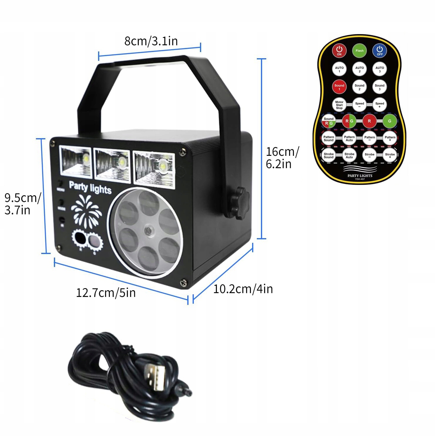 - Цей оновлений дискотечний ліхтар 3 в 1 містить обертовий стільниковий ліхтар, зелене та зелене світлодіодне світло та біле світлодіодне світло зі стробоскопом/УФ-хвилею.