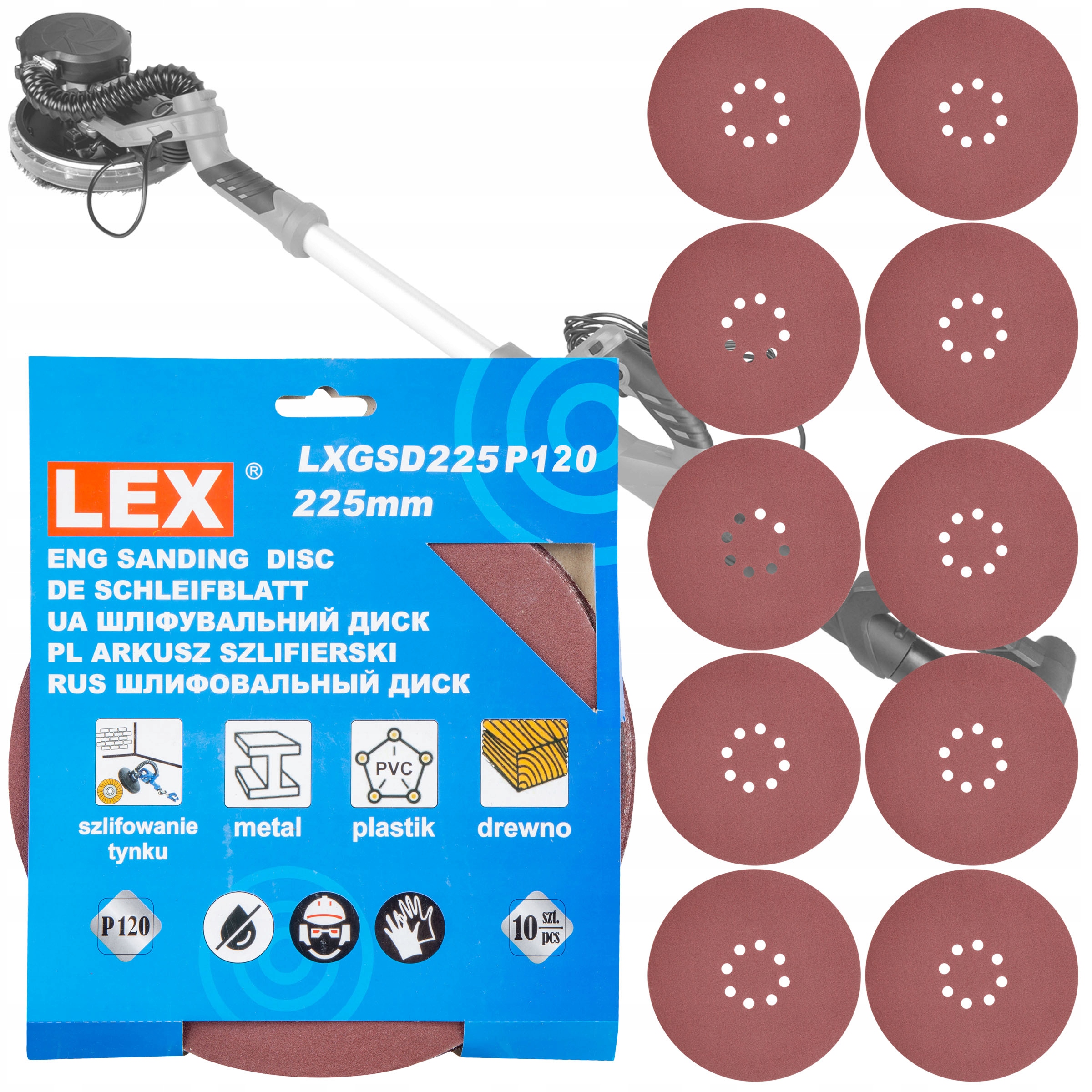 НАБІР 10 АБРАЗИВНИХ ДИСКІВ 225ММ P120 З ПИЛОЗБІРНИМИ ОТВОРАМИ ДЛЯ ШЛИФУВАЛЬНИХ МАШИН "ЖИРАФ" ДЛЯ ШТУКАТУРКИ ТА ШТУКАТУРКИ