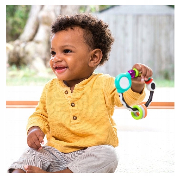 Каблучка-брязкальце з різнокольоровими брязкаючими намистинами. Включає маленьке дзеркало. Іграшка спонукатиме дитину до активної гри, доставляючи масу радості, а також зацікавить дитину своїми яскравими кольорами та різноманітністю текстур.