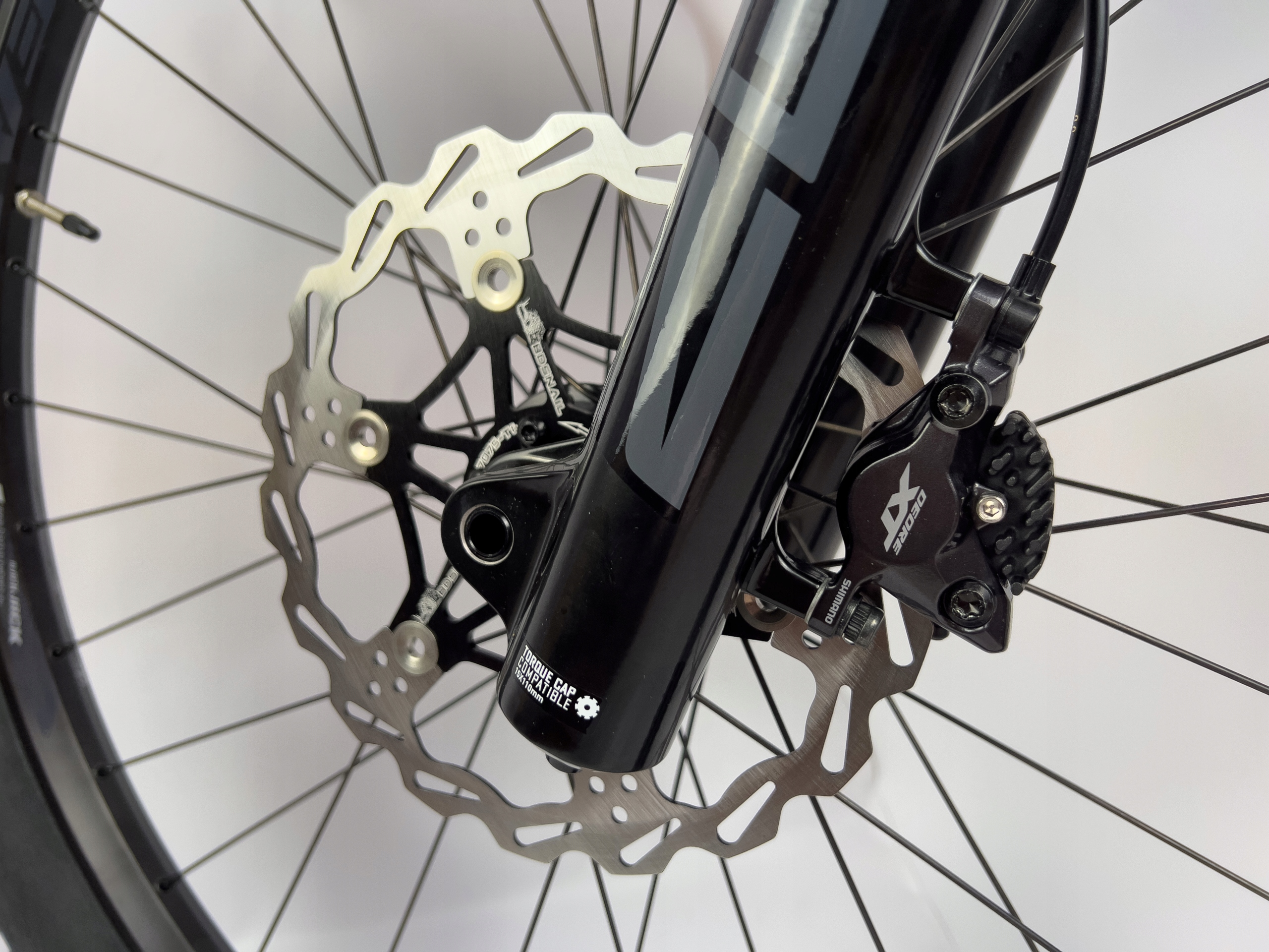 ✅ Гальмівний диск плаваючий, на чорній алюмінієвій гайці, що забезпечує кращий відвід тепла, краще прилягання до гальмівних колодок, що призводить до більшої гальмівної сили.