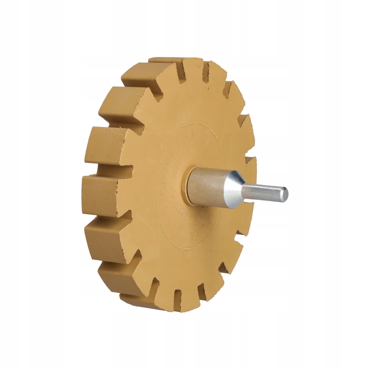 Гумовий диск/диск призначений для видалення з обода залишків скотчу та іншого бруду від приклеєних грузиків. До продукту входить адаптер, який дозволяє швидко підключити диск до тихохідного пристрою. Диск гарантує швидке та безпечне очищення та підготовку обода до встановлення нової ваги. Особлива листоподібна структура диска збільшує силу тиску. Завдяки цьому ми швидше видалимо забруднення. Ретельно підібрана суміш високоякісних гум, з яких виготовлений диск, не пошкоджує поверхню, не дряпає і не залишає слідів на очищених поверхнях. Використання диска в процесі очищення обода дозволяє швидко видалити стійкі забруднення. Диск можна використовувати з дрилем CP 887C і болгаркою CP 873. Максимальна швидкість обертання диска становить 3500 об/хв. Будь ласка, пам’ятайте, що якщо ми хочемо використовувати диск для шліфувальної машини CP873, який має затискний тримач, ми повинні додатково встановити тримач інструменту, наприклад 519 -6672