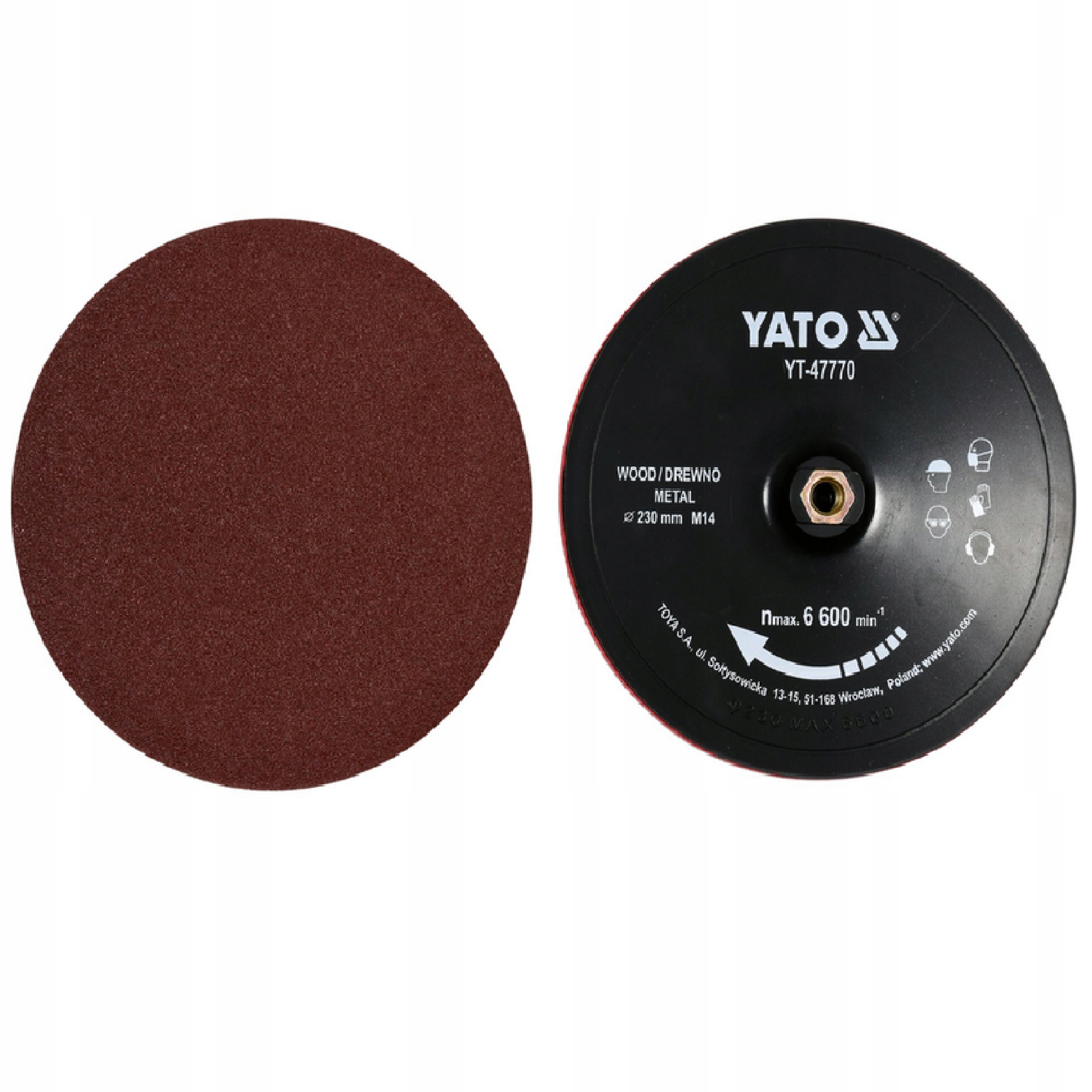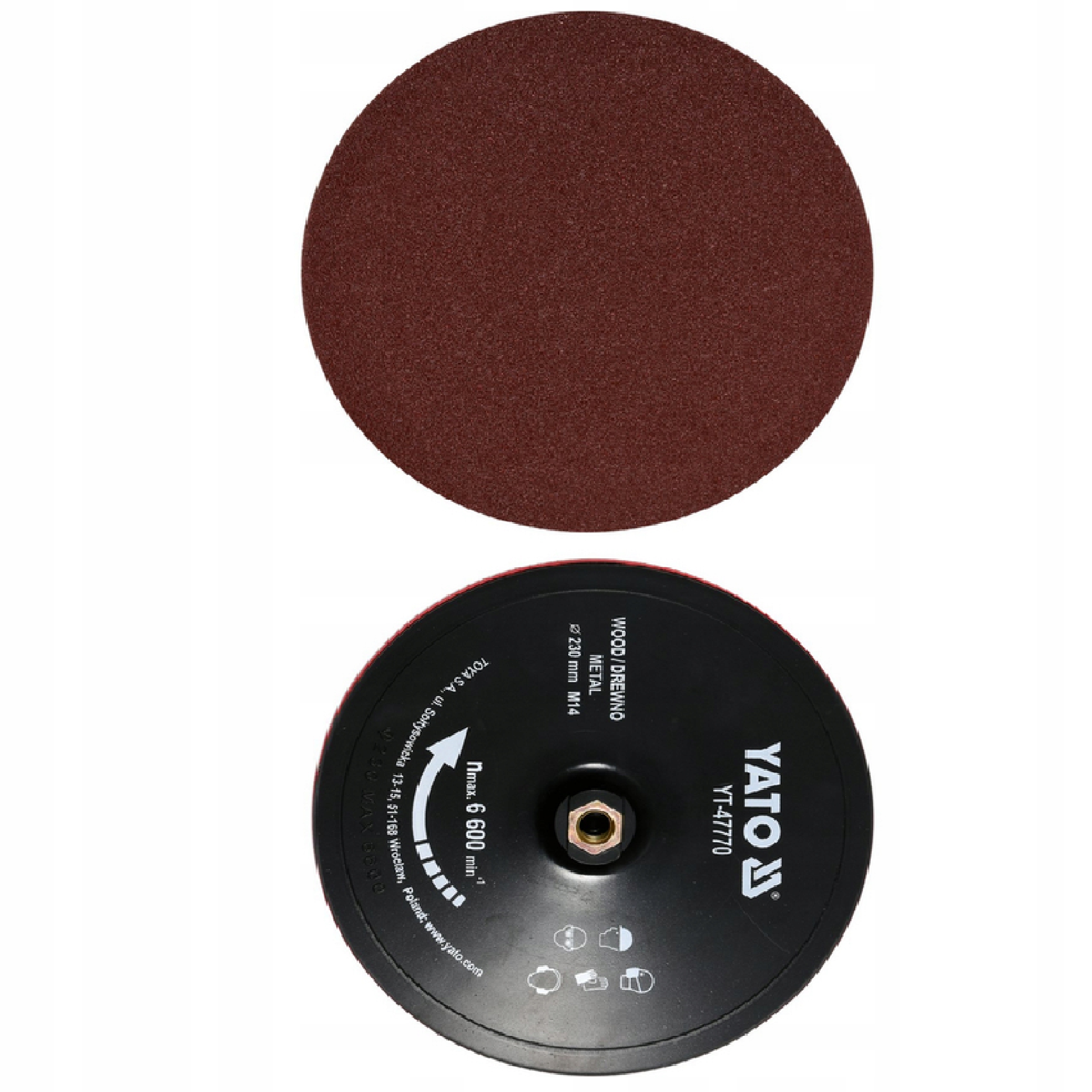 Диск для шліфування металевих і дерев'яних поверхонь за допомогою прикріплених абразивних липучок. Велика площа поверхні робить це можливим швидке отримання рівної площини заготовки. Це підходить для великих кутових шліфувальних машин з диском 230 мм і різьбою М14. Міцна липучка склеєна гнучкою неопреновою підкладкою, 4 липучки в комплекті абразиви для дерева та 4 для металу зернистістю 60, 80, 100, 120.