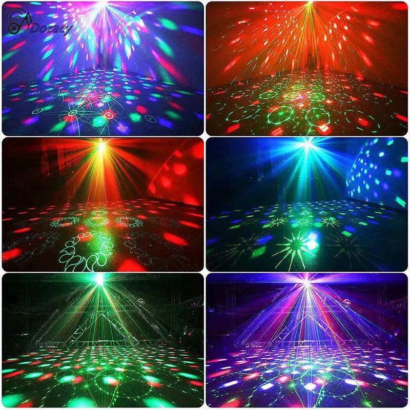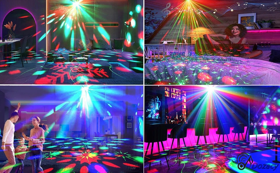 【комбінований ефект】 DJ Світло в поєднанні з різноманітним сценічним освітленням та барвистою атмосферою диско -кулі, оснащеної багатим динамічним проекційним малюнком, підтримує позитивну та негативну обертання, що є поєднанням багатьох ефектів для створення більш чудової атмосфери.