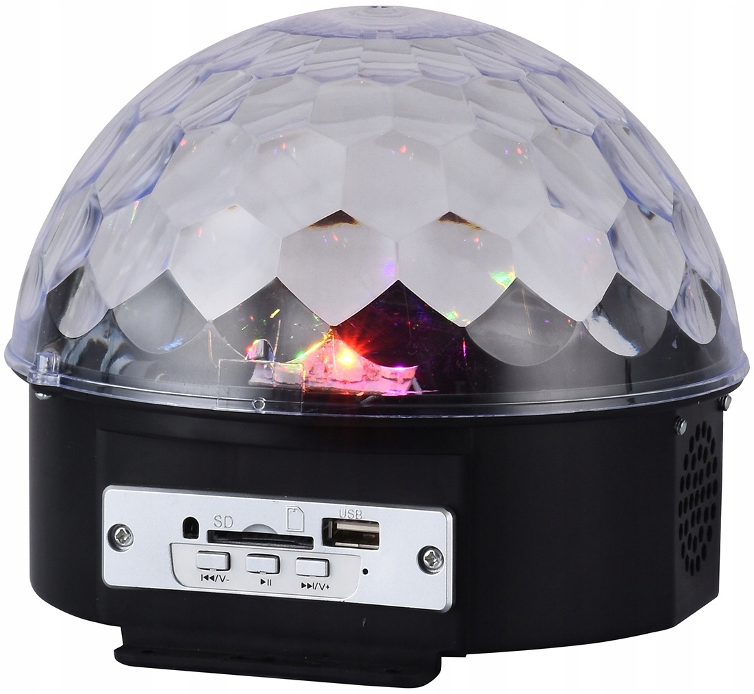 Дискотечна куля з вбудованим MP3-плеєром, пристроєм для читання карток microSD, портом USB і високоякісними стереодинаміками