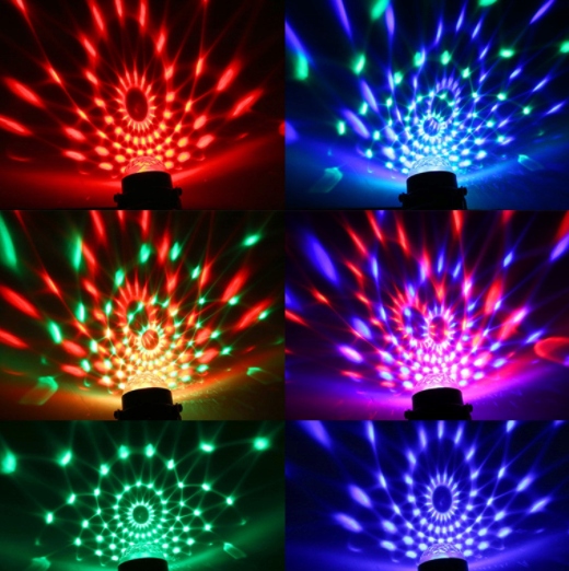 Вони добре виглядають наполицях, стійках і барних полицях. Відображені кольори надають приміщенням особливого шарму. Компактний світлодіодний світловий ефект відтворює свою автоматичну програму освітлення. При включенні куля починає світитися, створюючи різнокольоровий ефект, кольори змінюються, крутяться або спалахують. Можливість настінного та стельового монтажу.