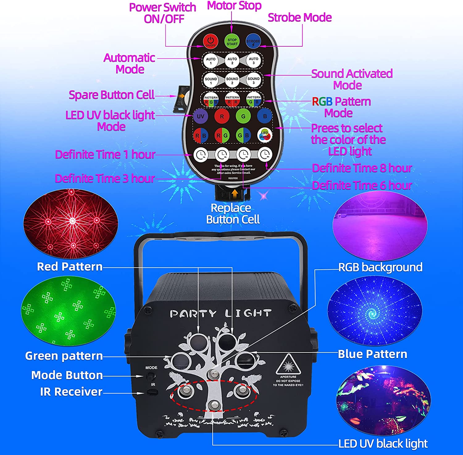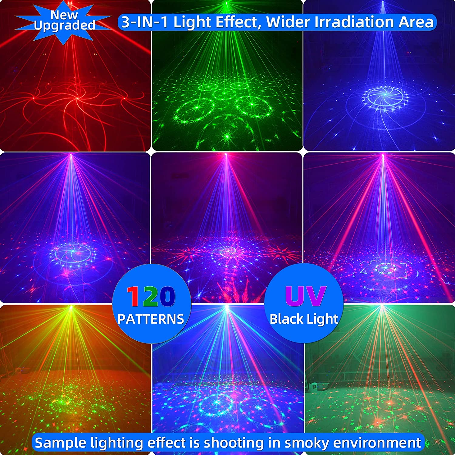 ✅ 【Оновлений блакитний світлодіодний візуальний ефект】 Новий оновлений 3-в-1 3-в-1 стробоскоп, світлодіод і дискотечне світло для вечірок, що містить 120 комбінацій візерунків, 8 кольорів фону (червоний, зелений, синій). , червоний і зелений, червоний і синій, синій і зелений, червоний і зелений і синій) і 3 комбінації променів (червоний, зелений, синій), створюючи приголомшливі та потужні сценічні світлові ефекти з високоякісним зображенням і стробоскопами RGB, романтичні, фантастичні і дивовижно.