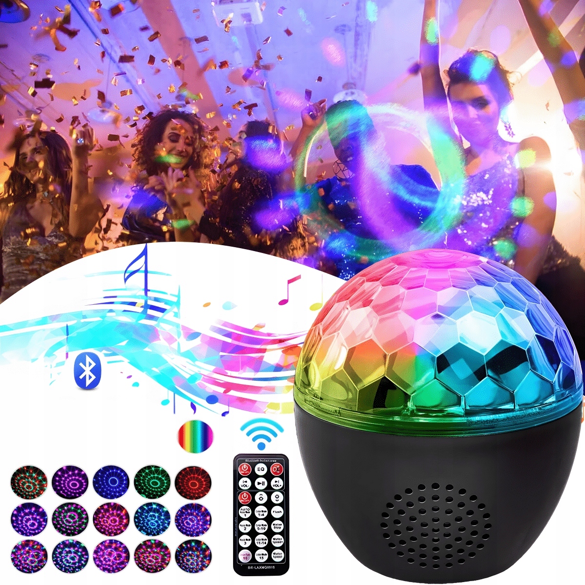 Світлодіодна дискотечна куля з 16 ілюмінаційними круглими диско-ліхтарями з музичним керуванням для Хеллоуїна, Різдва, дітей, диско-вечірки, ді-джея, оформлення дня народження