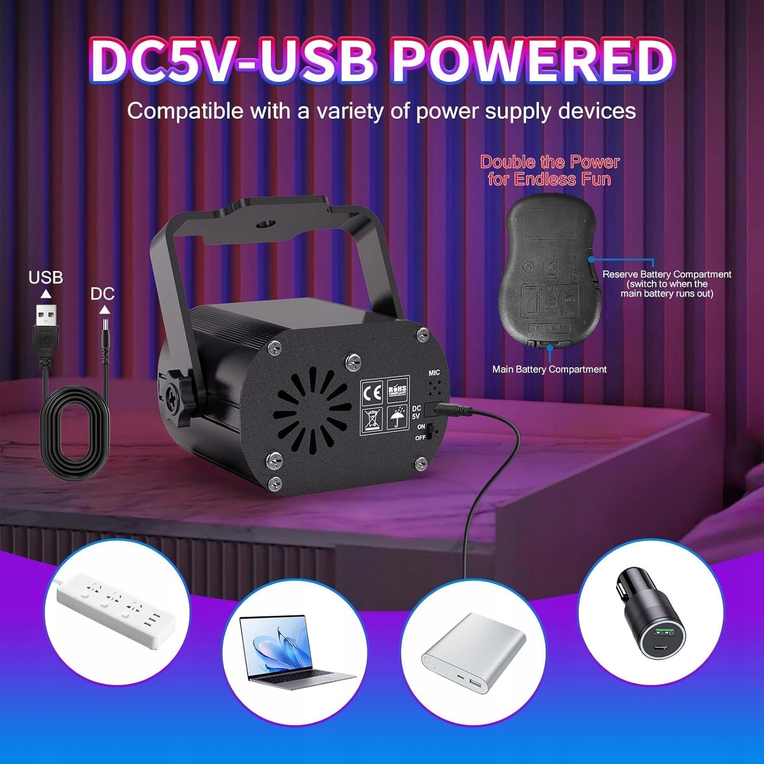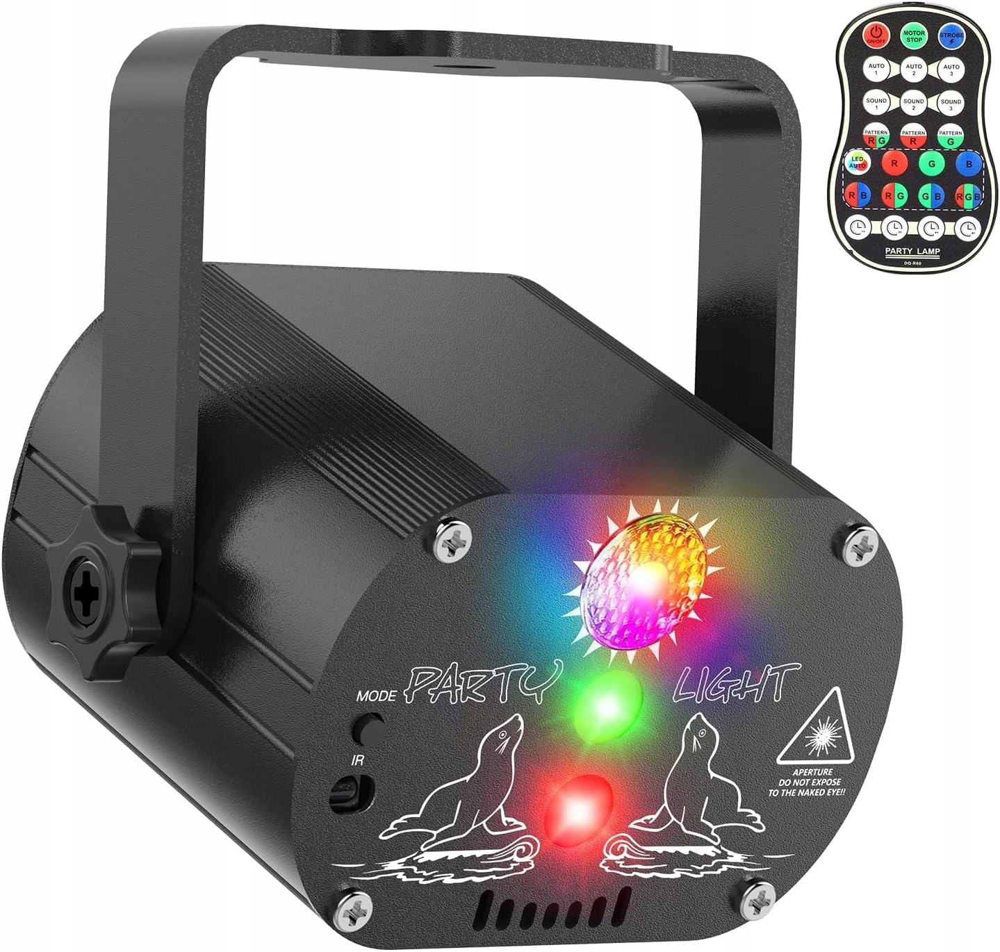 - 60 світлових ефектів і 7 режимів: диско-куля DJ оснащена червоним і зеленим основним світлом і червоним, зеленим і синім світлодіодним фоном. Він пропонує 60 різних шаблонів диско і 7 режимів роботи (автоматичний режим 1/2/3, режим спалаху, музичний режим 1/2/3). Різні комбінації можуть створити захоплююче світлове шоу.